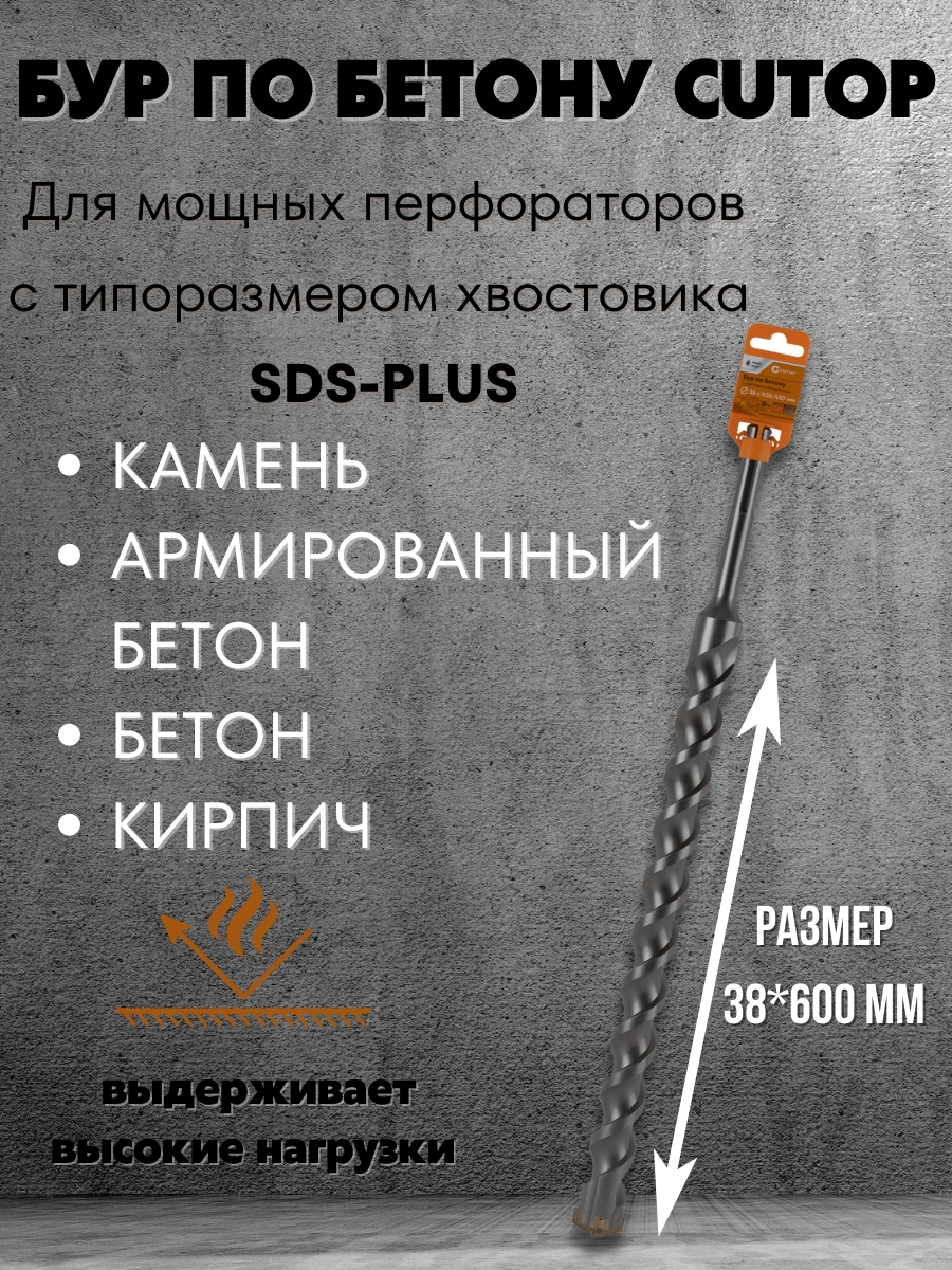 Бур по бетону CUTOP, Profi Plus, с крестовым наконечником, SDS-Max, 38х600 мм