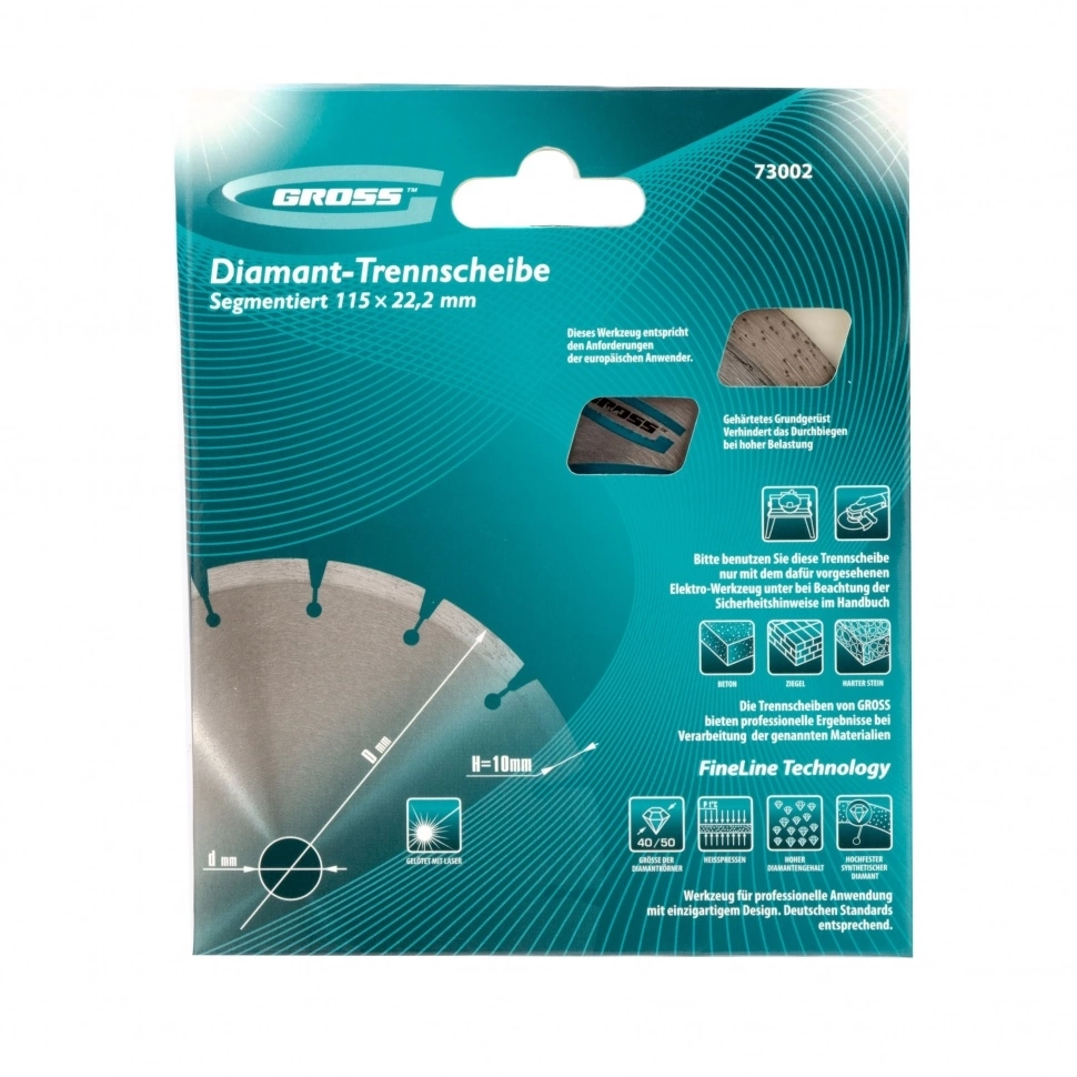 Диск алмазный лазерная приварка сегментов сухое резание 115х22,2 мм Gross