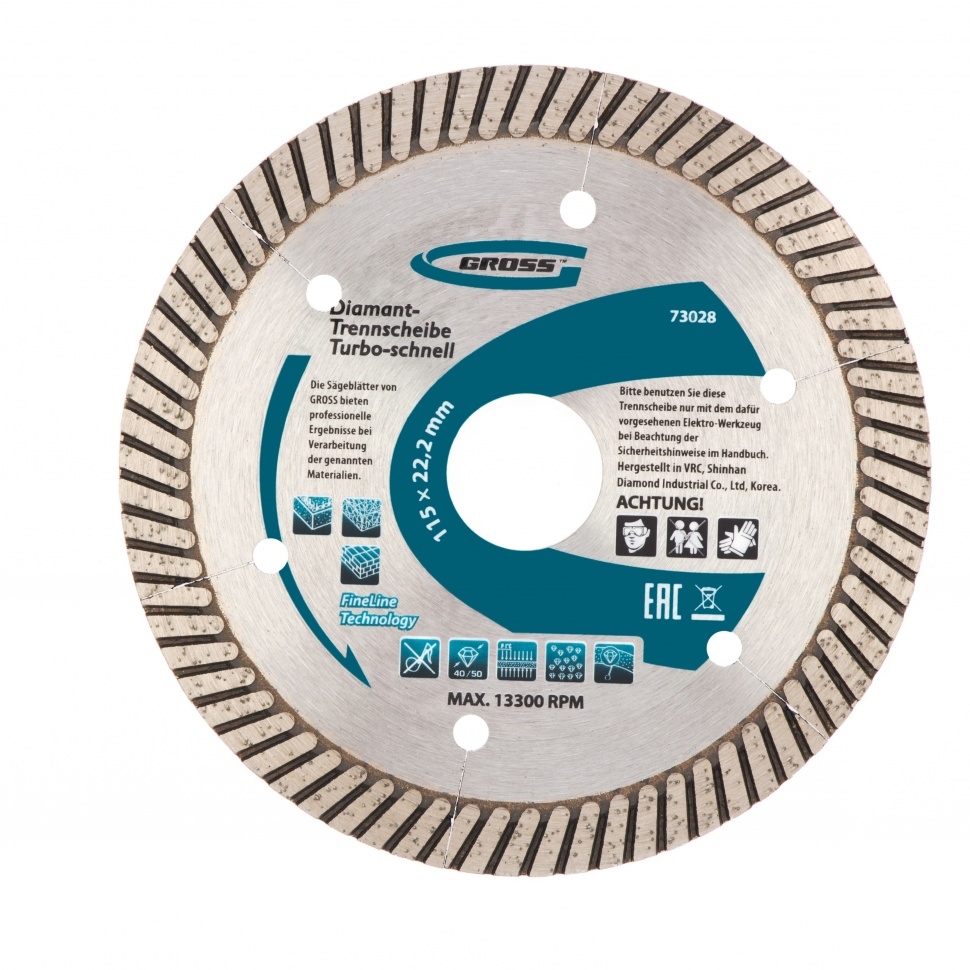 | Диск алмазный турбо с лазерн.перфорац. сухое резание 115х22,2 мм Gross | 73028 | 1 шт. |
