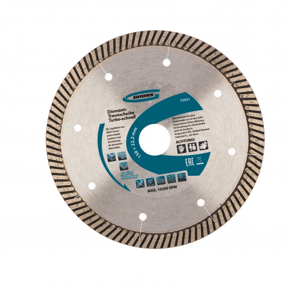 | Диск алмазный турбо с лазерн.перфорац. сухое резание 150х22,2 мм Gross | 73031 | 1 шт. |