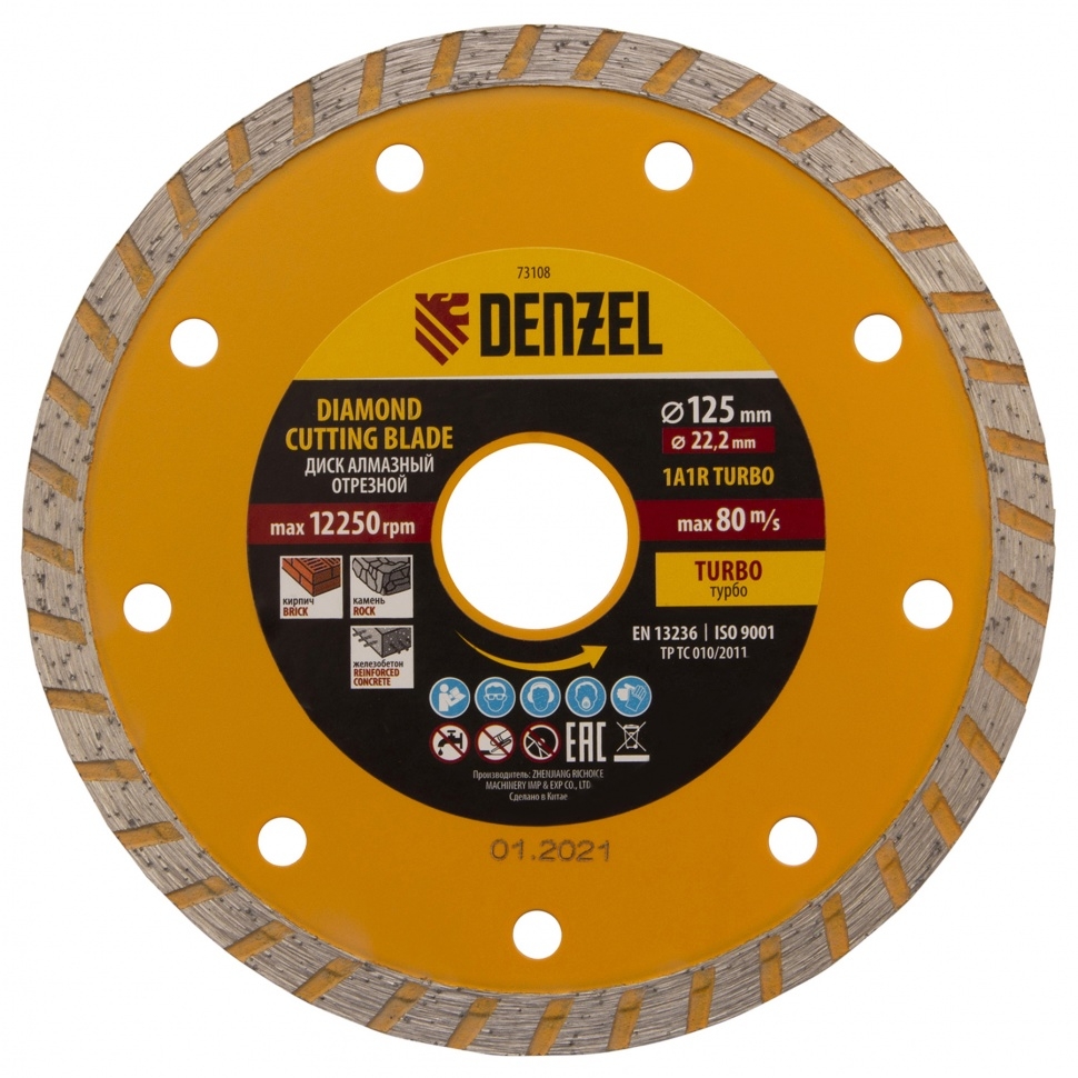 Диск отрезной алмазный сегментный турбо сухое резание 125х22,2 мм Denzel