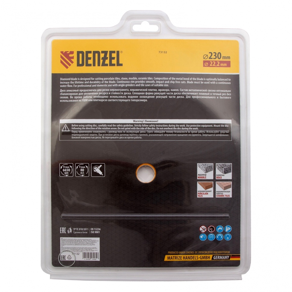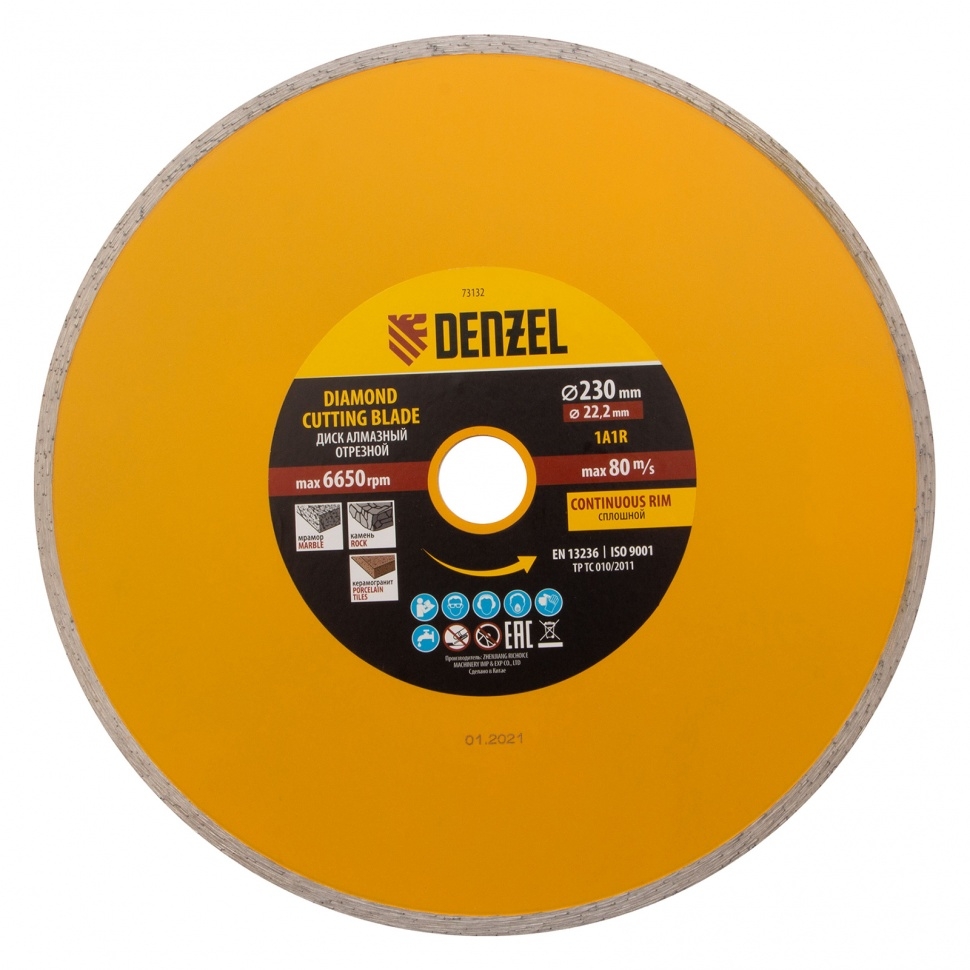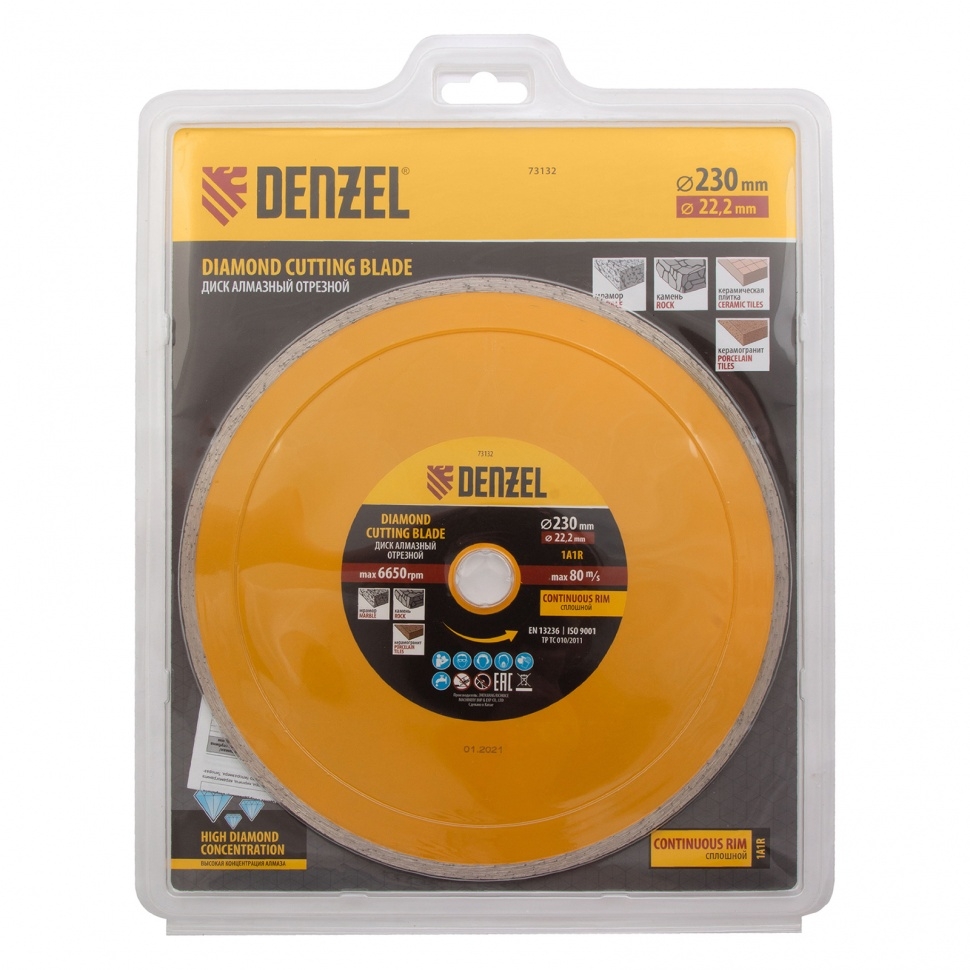 Диск отрезной алмазный сплошной мокрое резание 230х22,2 мм Denzel