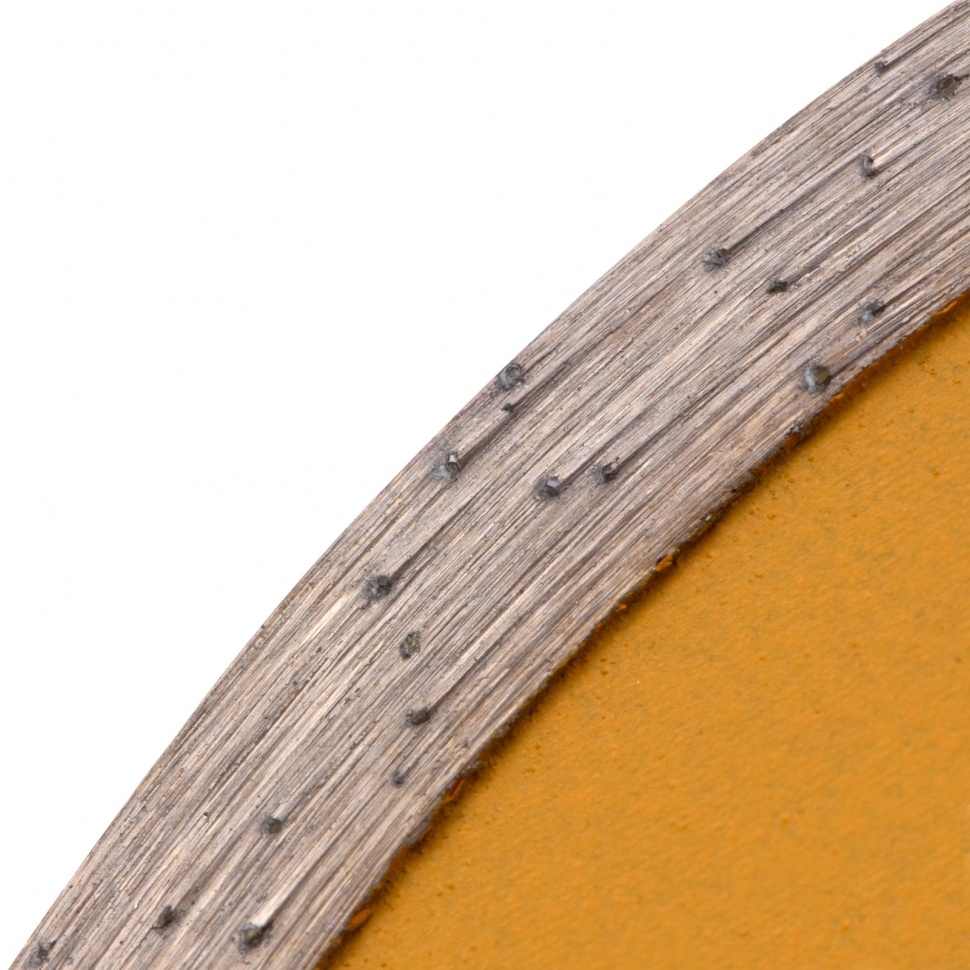 Отрезной алмазный диск Denzel Сплошной 73132, ф230 х 22,2 мм, используется для мокрого резания совместно с углошлифовальными машинами или плиткорезами с посадочным диаметром 22,2 мм. С его помощью режут камень, мрамор, керамогранитную и керамическую плитку. Диск отличается хорошей производительностью за счет высокой скорости реза, поэтому подходит для профессионального применения.Преимущества Сплошная конструкция обеспечивает эффективное выполнение большого объема работ даже при резании хрупких материалов. Режущая кромка шириной 7 мм позволяет получить аккуратный срез без зазубрин и сколов. Диск обладает высоким рабочим ресурсом благодаря увеличенной концентрации алмазов в рабочем слое. Отрезной диск изготовлен способом холодного прессования.