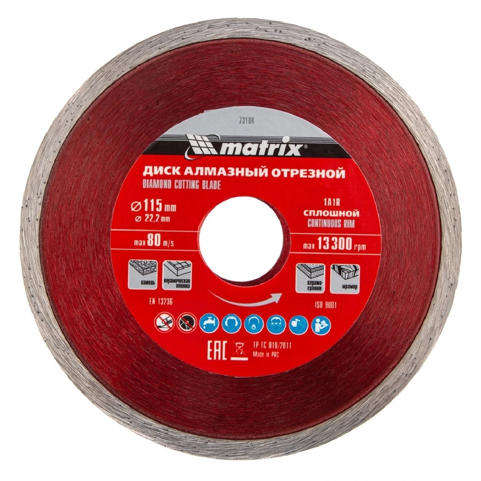 | Диск отрезной алмазный сплошной влажная резка 115х22,2 мм Matrix | 73184 | 1 шт. |
