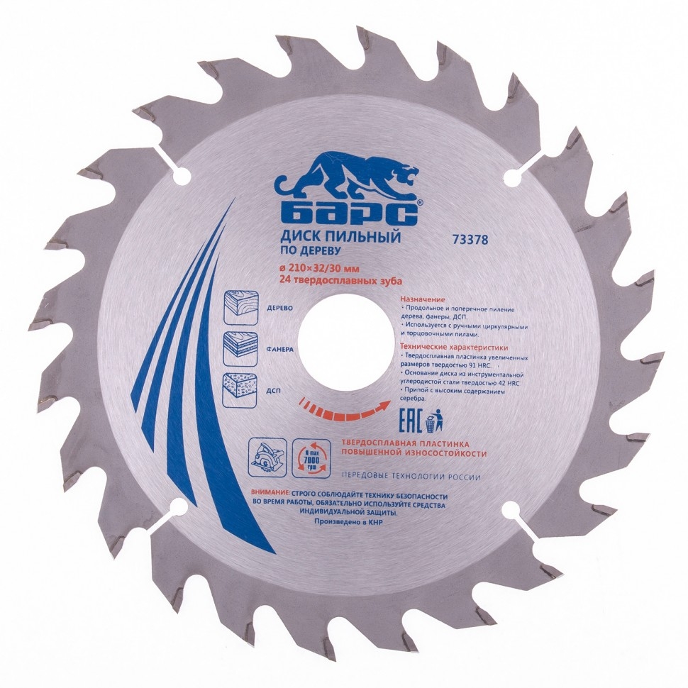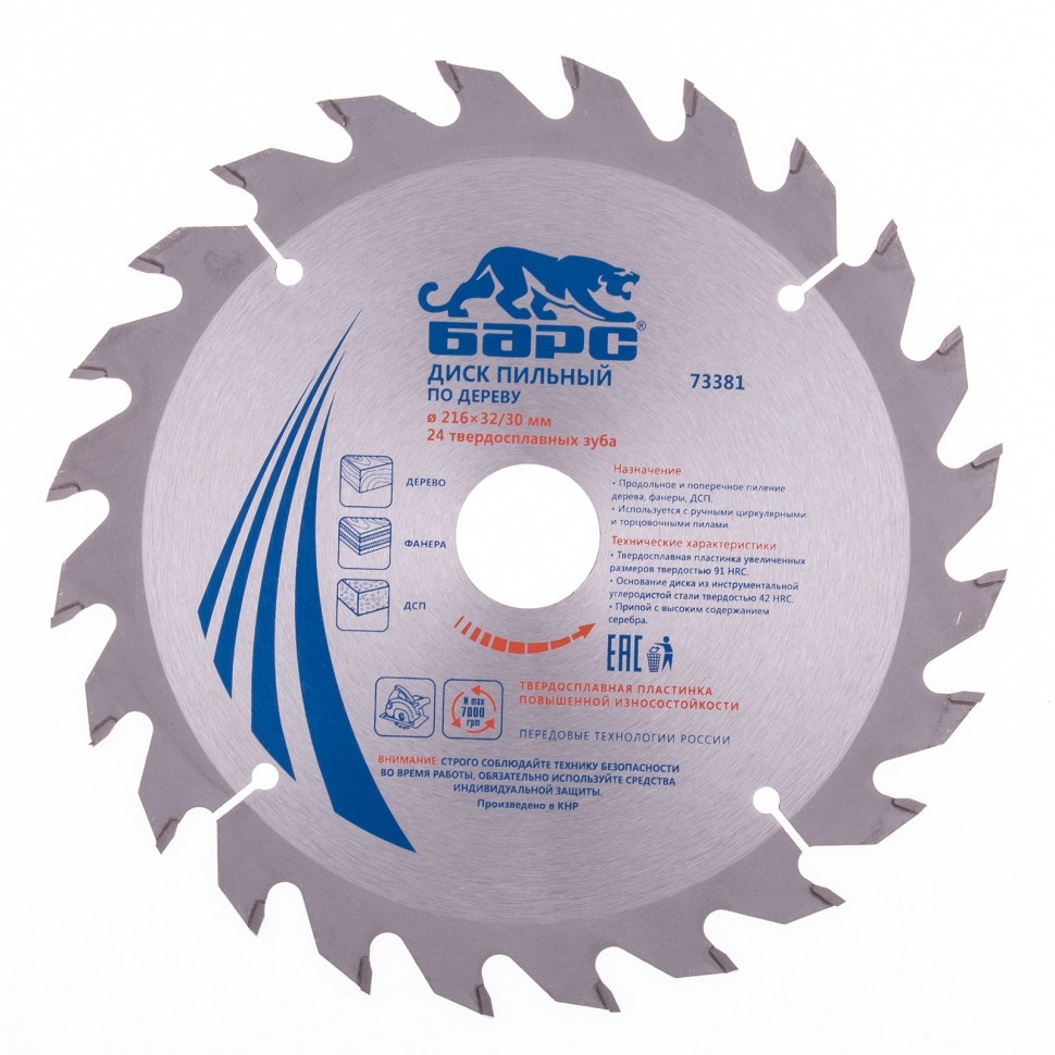 Диск пильный по дереву 24 зуба + кольцо 32/30 мм Барс
