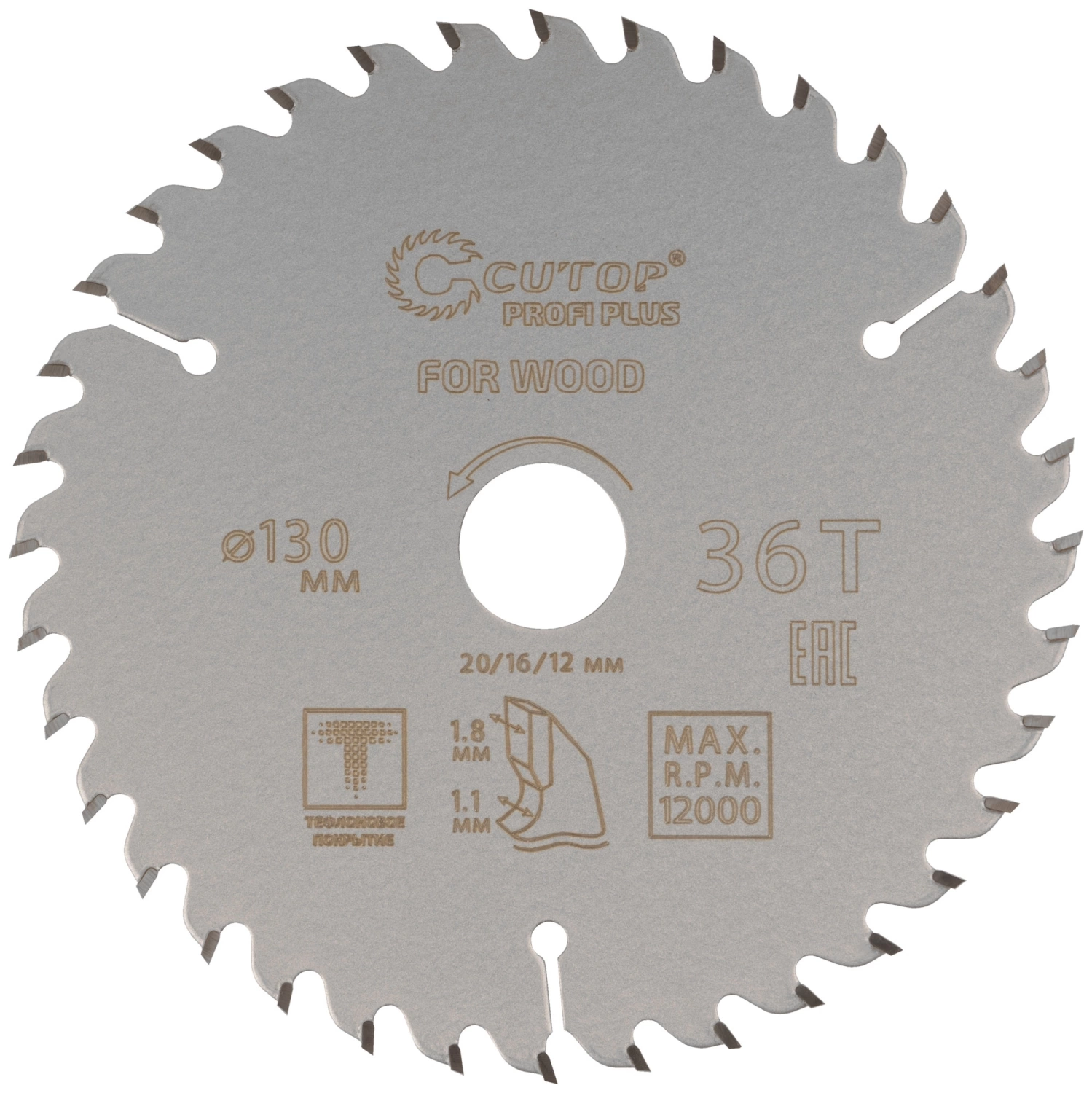 Диск пильный по дереву с тефл.покр.36Т CUTOP Profi Plus 130х1,1/1,8х20/16/12 мм