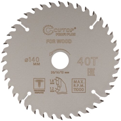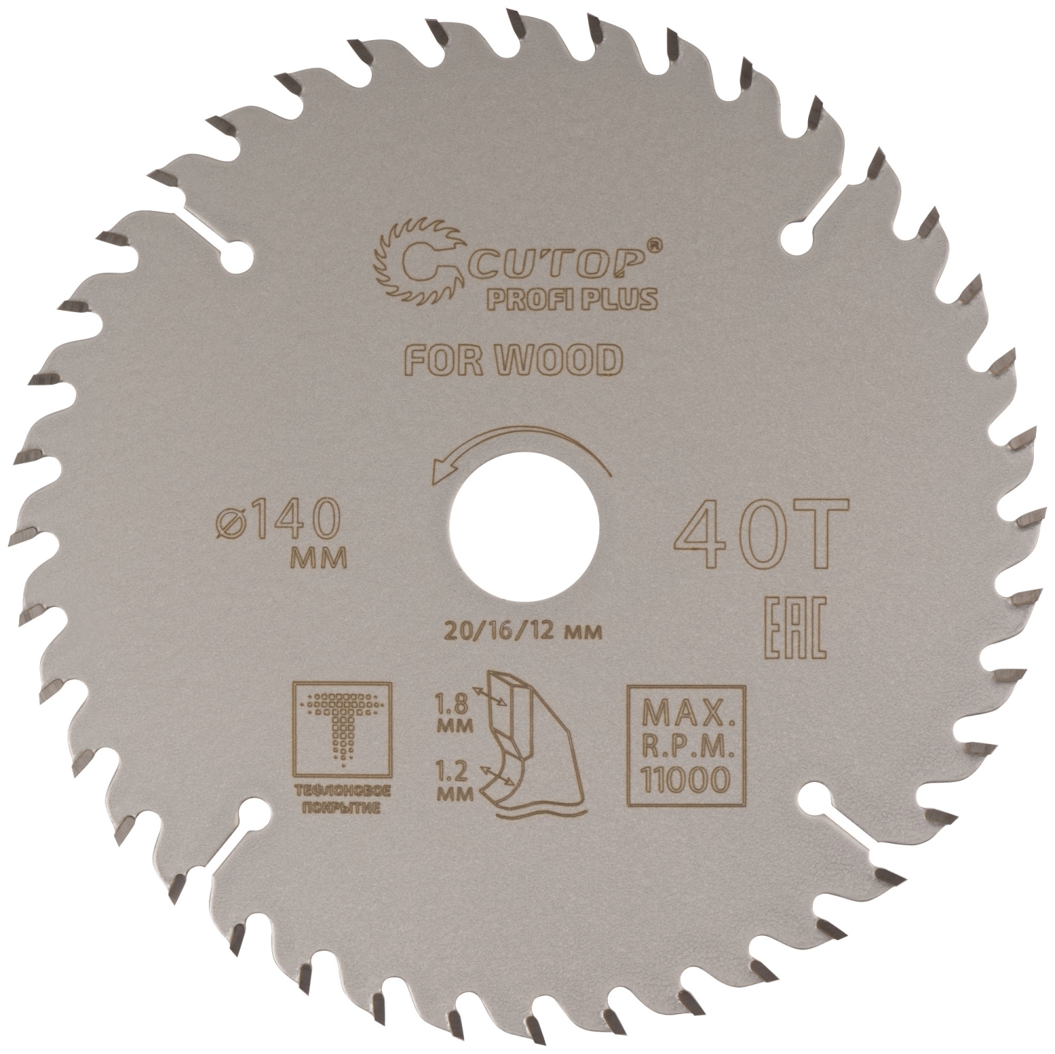 Диск пильный по дереву с тефл.покр.40Т CUTOP Profi Plus 140х1,2/1,8х20/16/12 мм