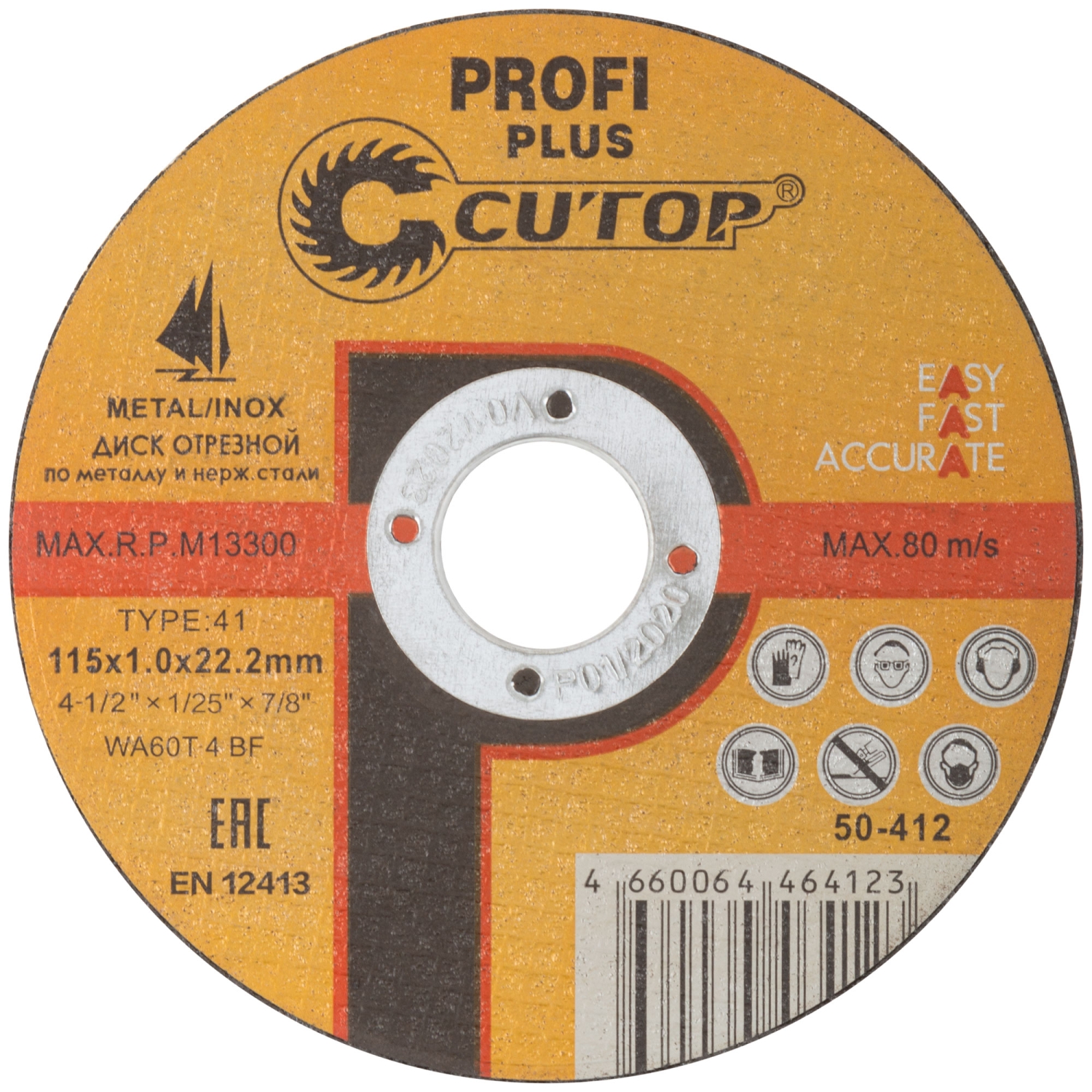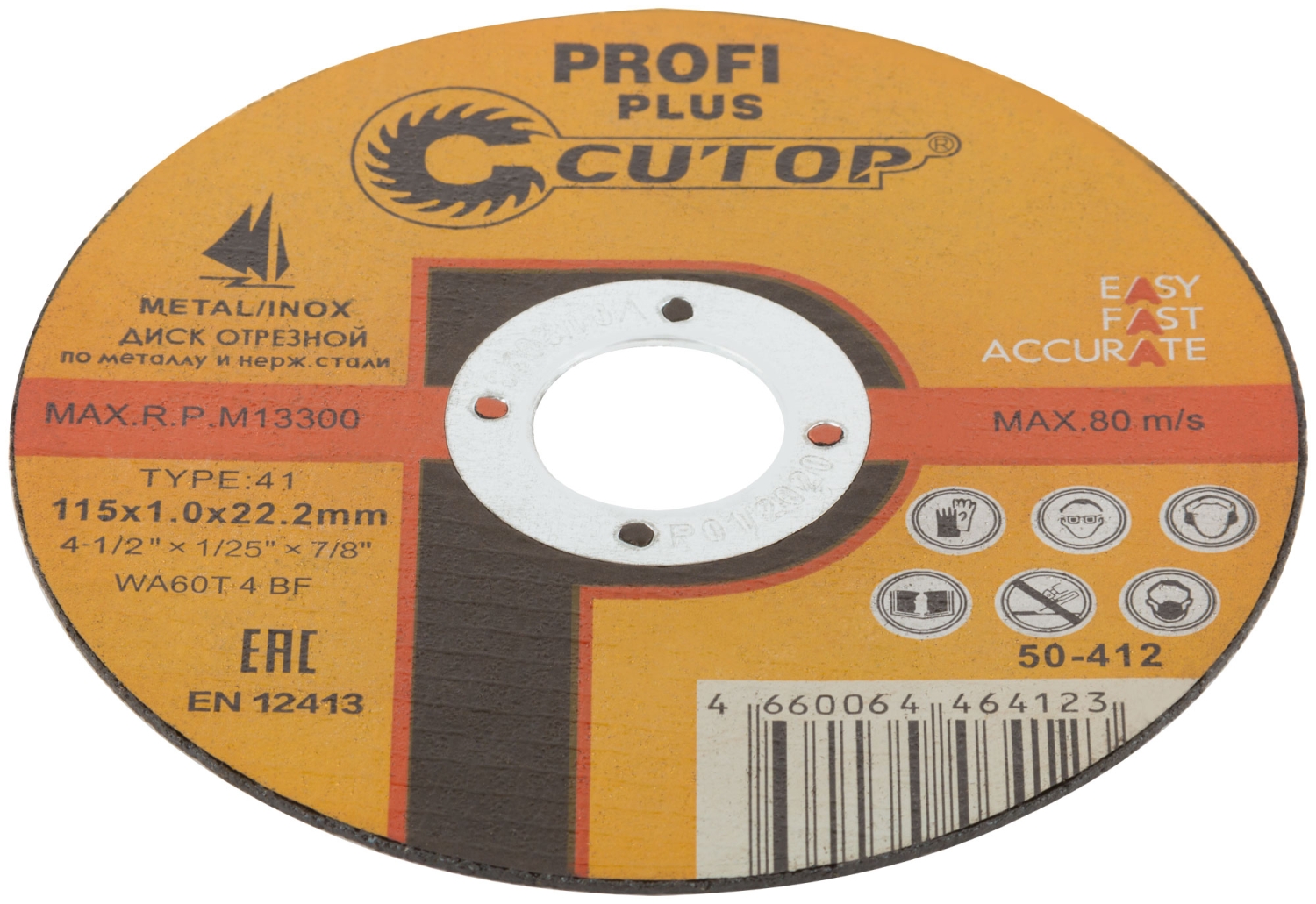 CUTOP Profi PLUS. Использованы уникальные технологии производства. Профессиональный отрезной диск для промышленного использования на основе монокристаллического электрокорунда, который улучшает КПД диска и позволяет увеличить количество резов в несколько раз. Предназначен для резки металла и н ержавеющей стали. Для углошлифовальных машин. Посадочный диаметр 22,2 мм.