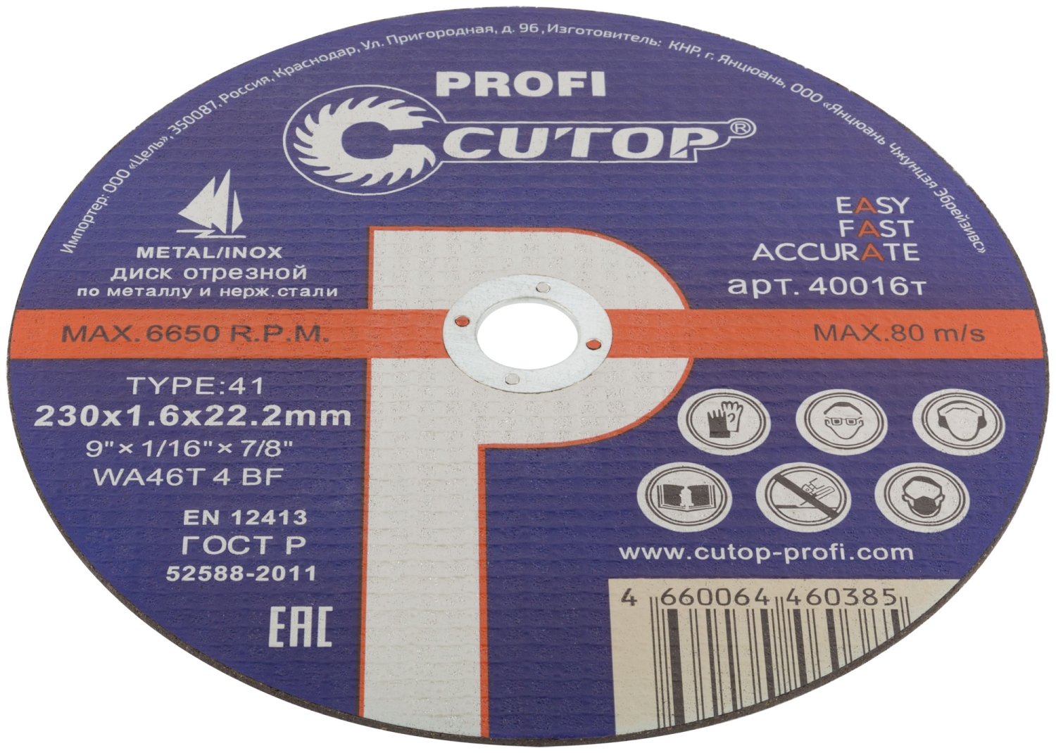 Диск Проф отрезной по мет и нерж.стали Т41-230х1,6х22,2 мм Cutop Profi