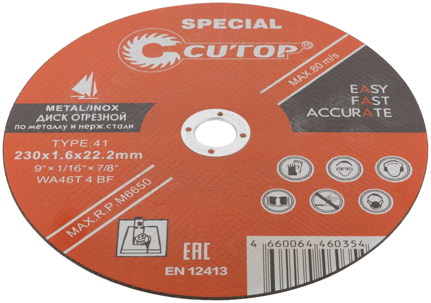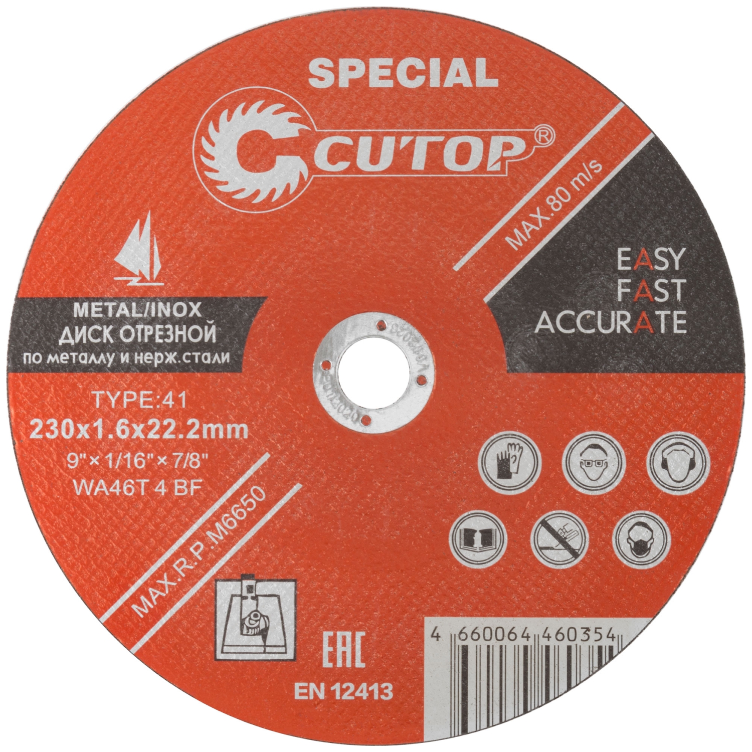 Диск Проф спец отрезной по мет., нерж.стали и алюм.Т41-230х1,6х22,2 мм Cutop Special (CUTOP)