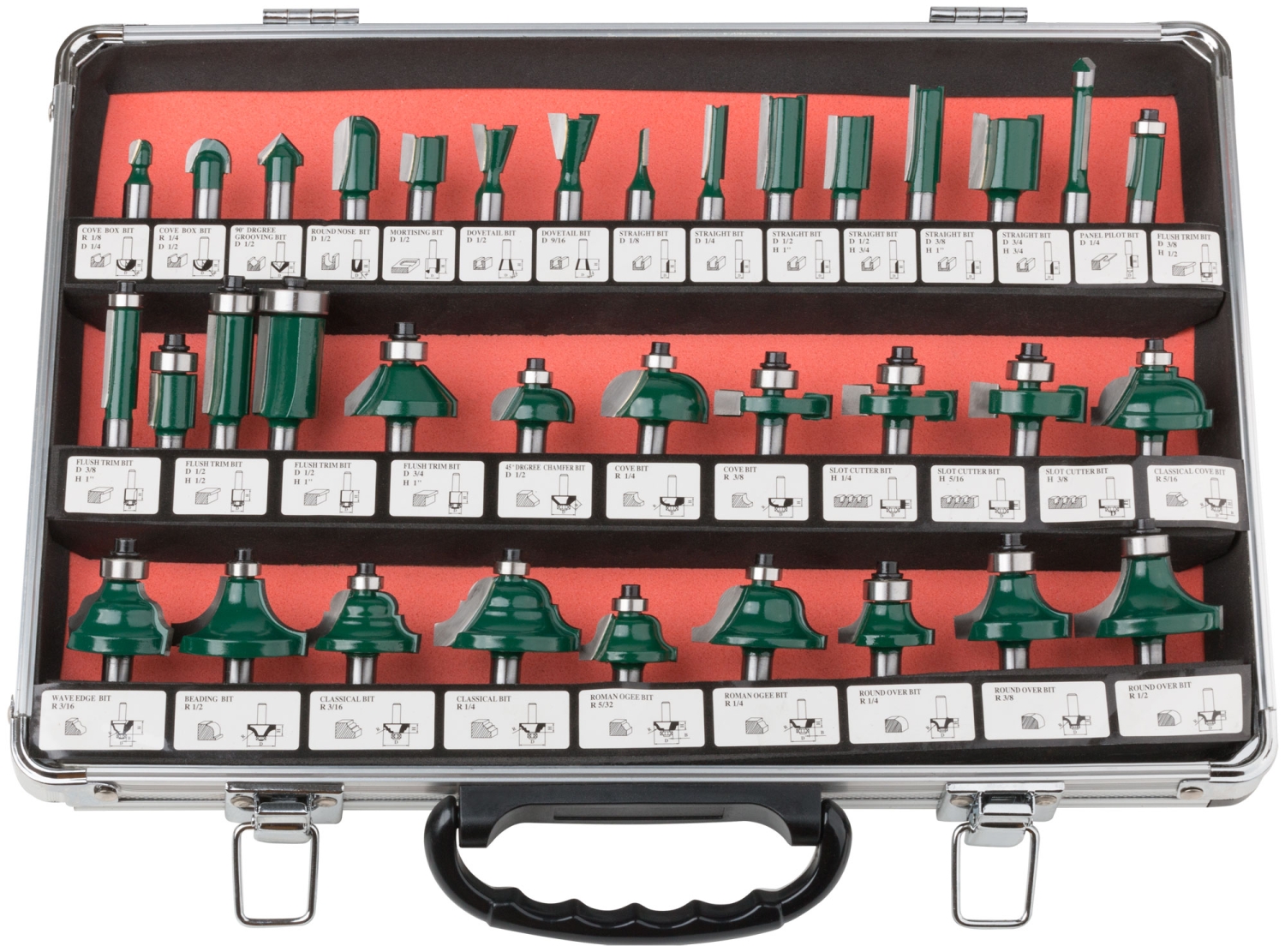Фрезы по дереву кромочные, набор 35шт., алюм.кейс, хвостовик 8 мм