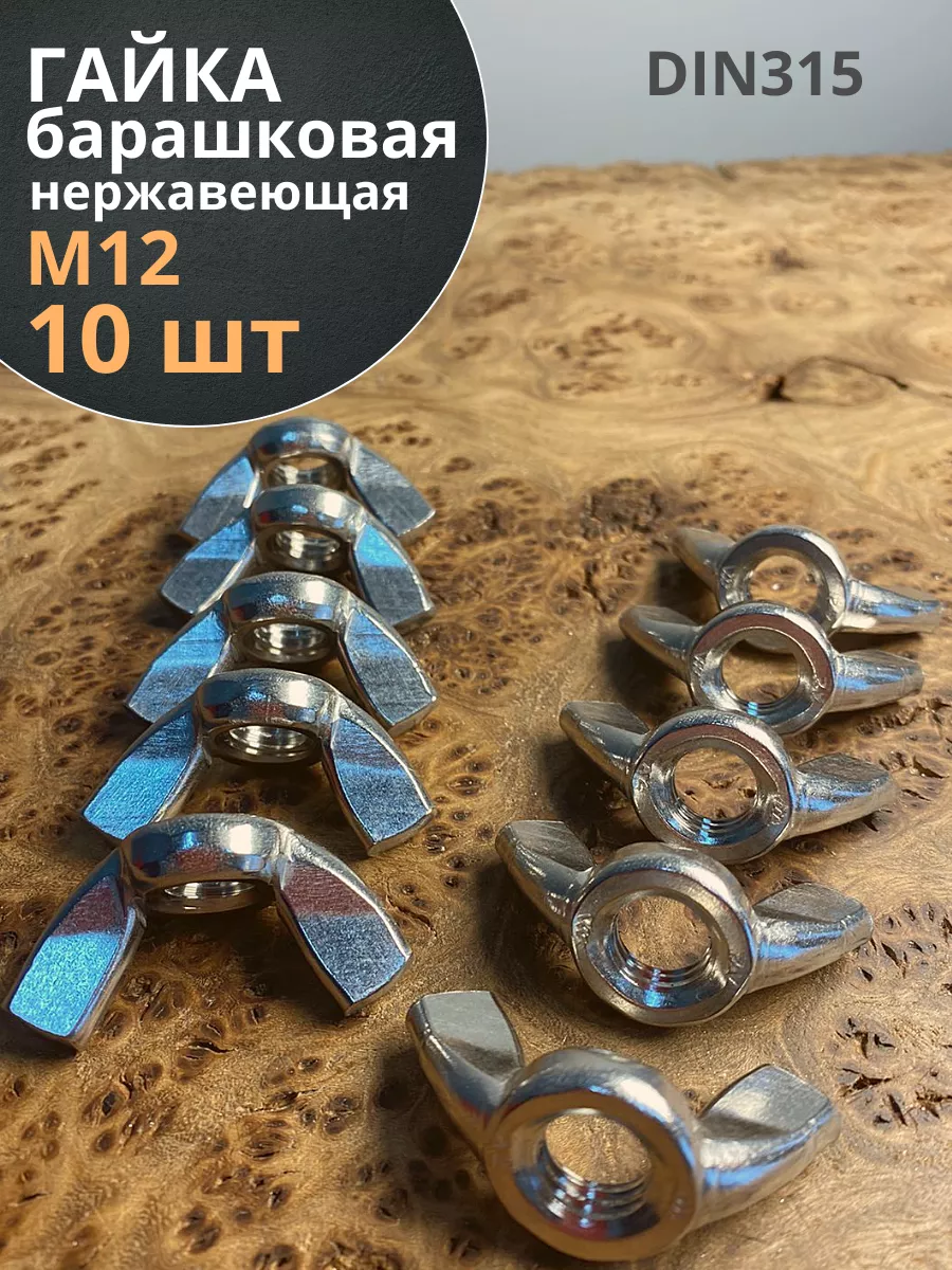 Гайка барашковая нержавеющая М12 DIN315 , 10 шт.