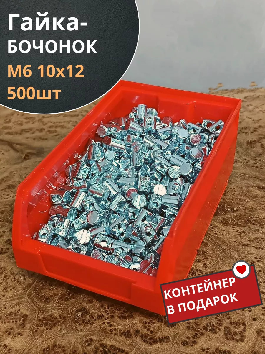 | Гайка-бочонок М6 10х12мм для мебели , (500 шт) в контейнере | гб61012ф500 | 1 шт. |