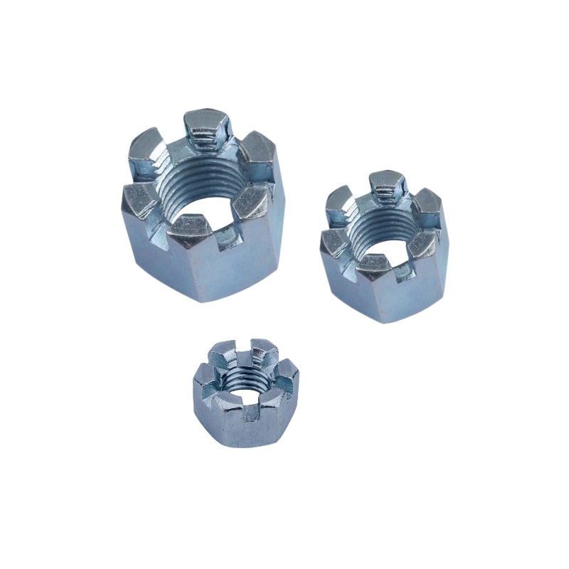 • Шесть прорезей позволяют зафиксировать гайку шплинтом. Это исключает риск ее ослабления при вибрации, ударах или циклических нагрузках, так как шплинт механически блокирует вращение;