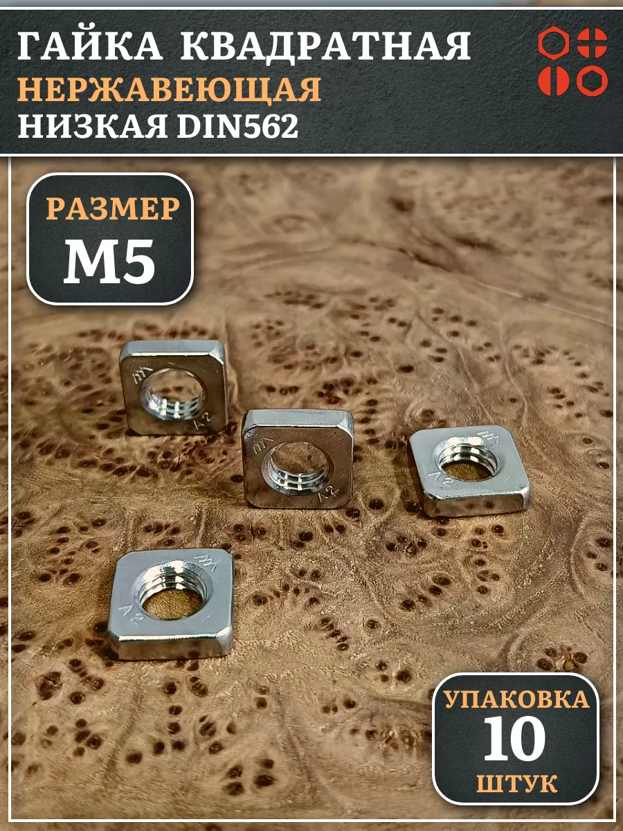 Гайка квадратная М5 нержавеющая низкая DIN562, 10 шт.