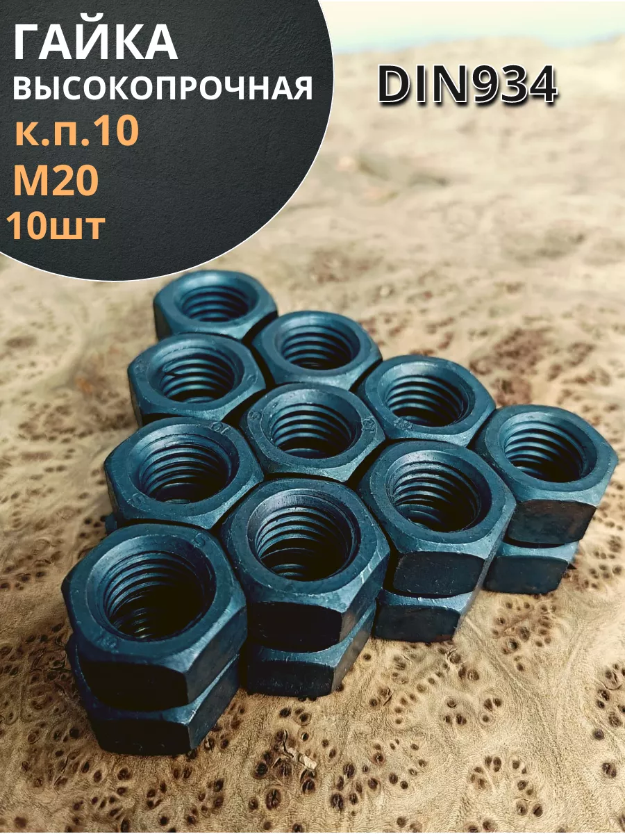 Гайка М20 высокопрочная черная к.п.10 DIN934, 10 шт.