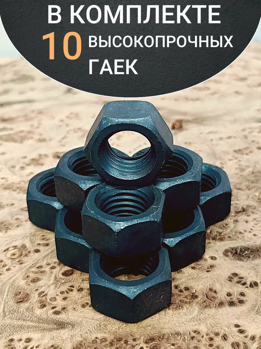 Гайка М27 высокопрочная черная к.п.10 DIN934, 10 шт.