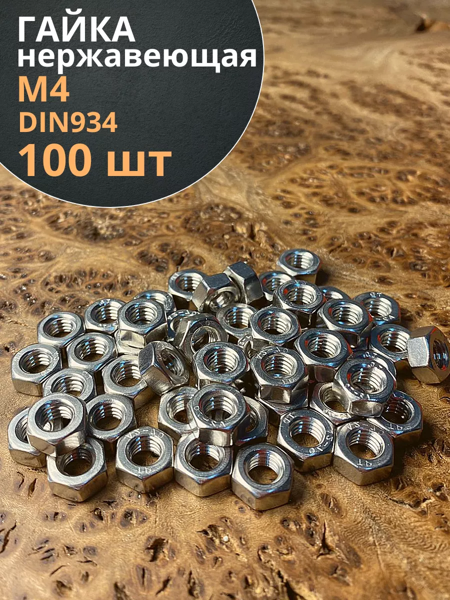 Гайка Нержавеющая М4 DIN 934 шестигранная 100 шт