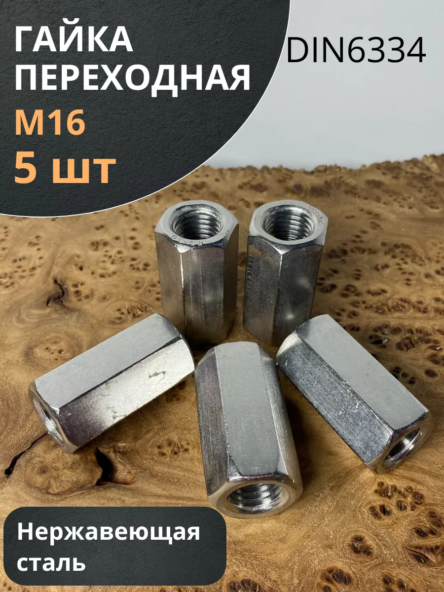 Гайка переходная нержавеющая М16 DIN6334, 5 шт.
