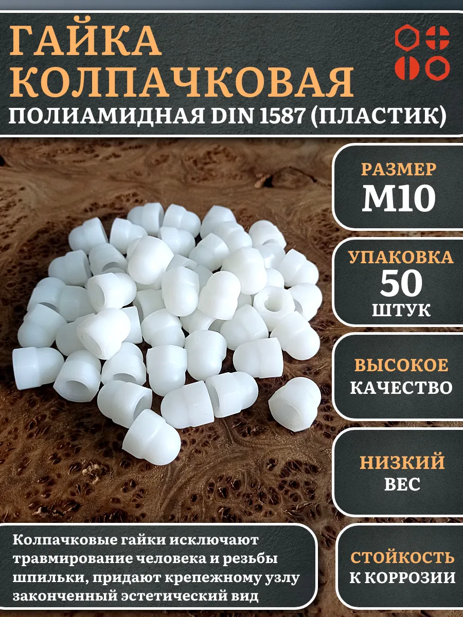 | Гайка полиамидная колпачковая (пластик) М10 DIN1587, 5 шт. | 2000000644233ф5 | 1 шт. |