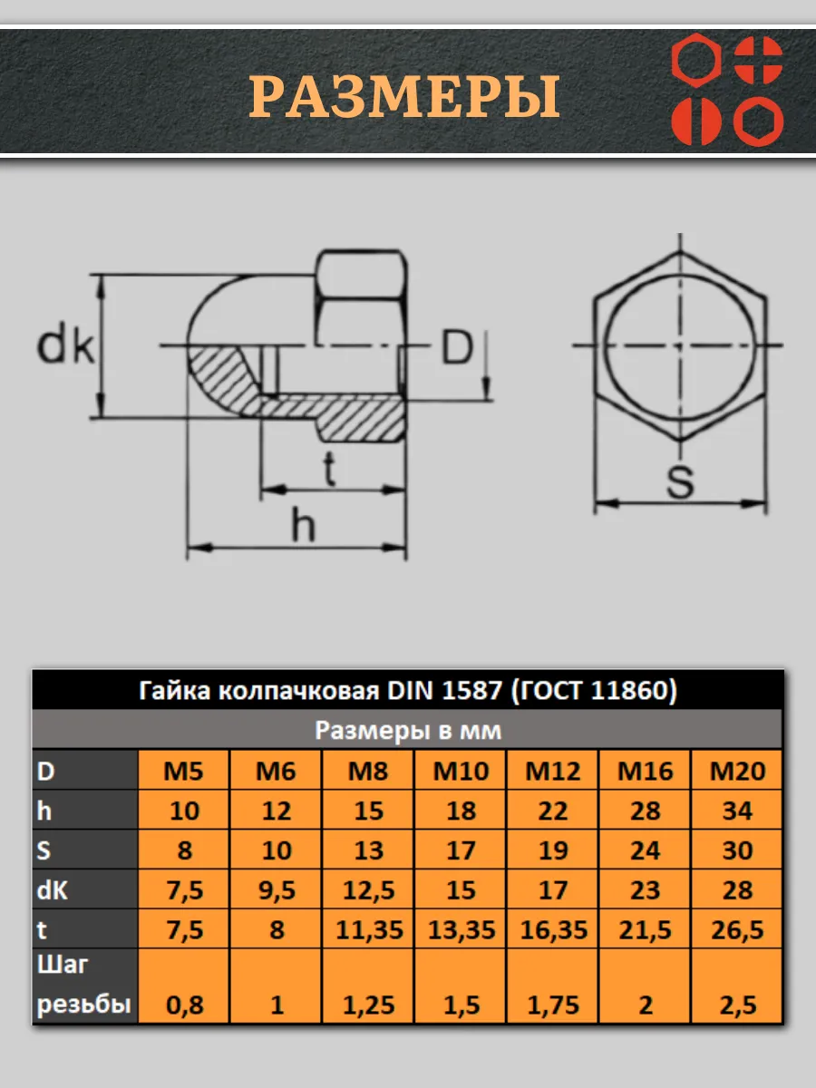 | Гайка полиамидная колпачковая (пластик) М8 DIN1587, 20 шт. | 2000000644226ф20 | 1 шт. |