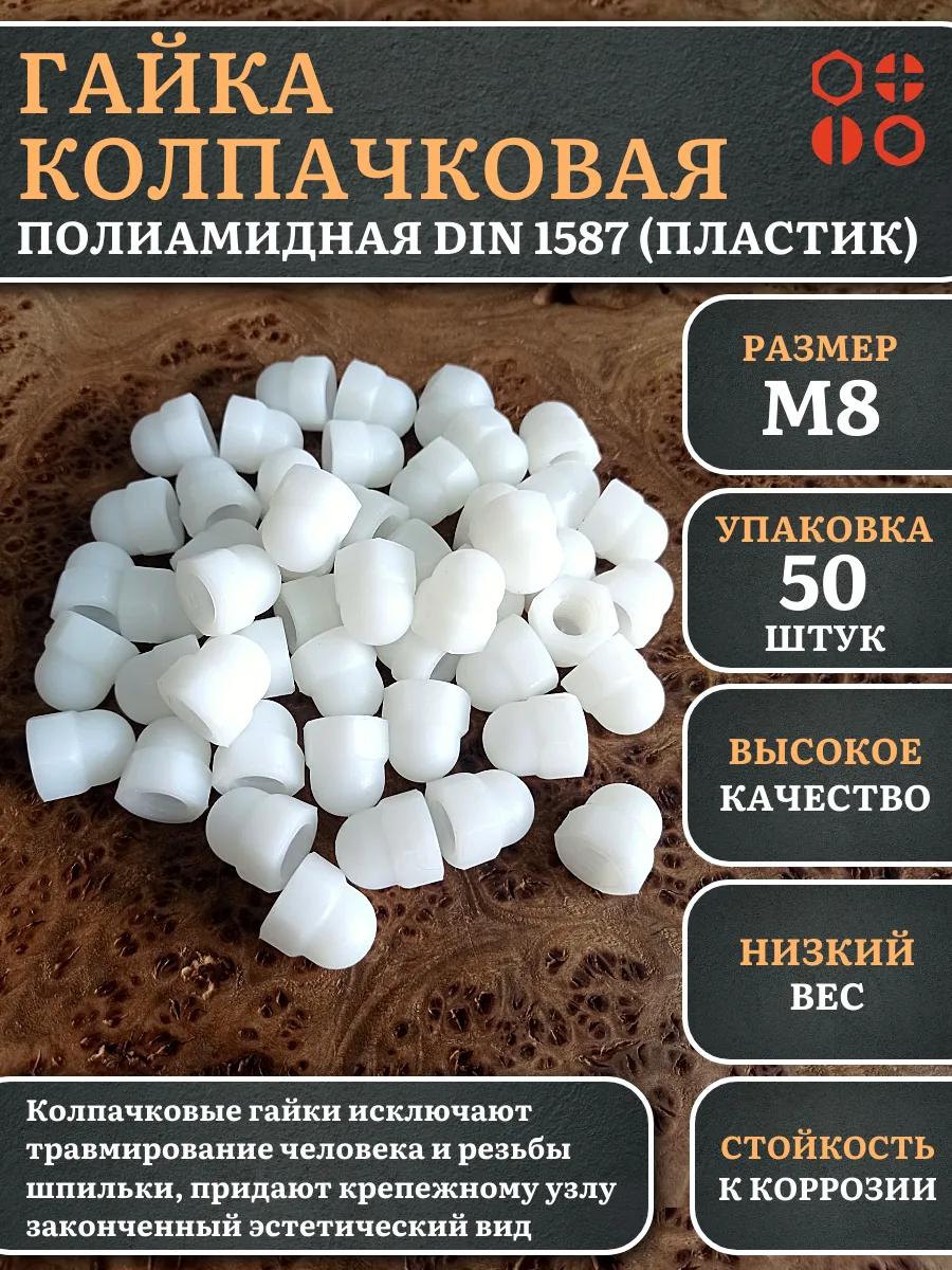 | Гайка полиамидная колпачковая (пластик) М8 DIN1587, 5 шт. | 2000000644226ф5 | 1 шт. |