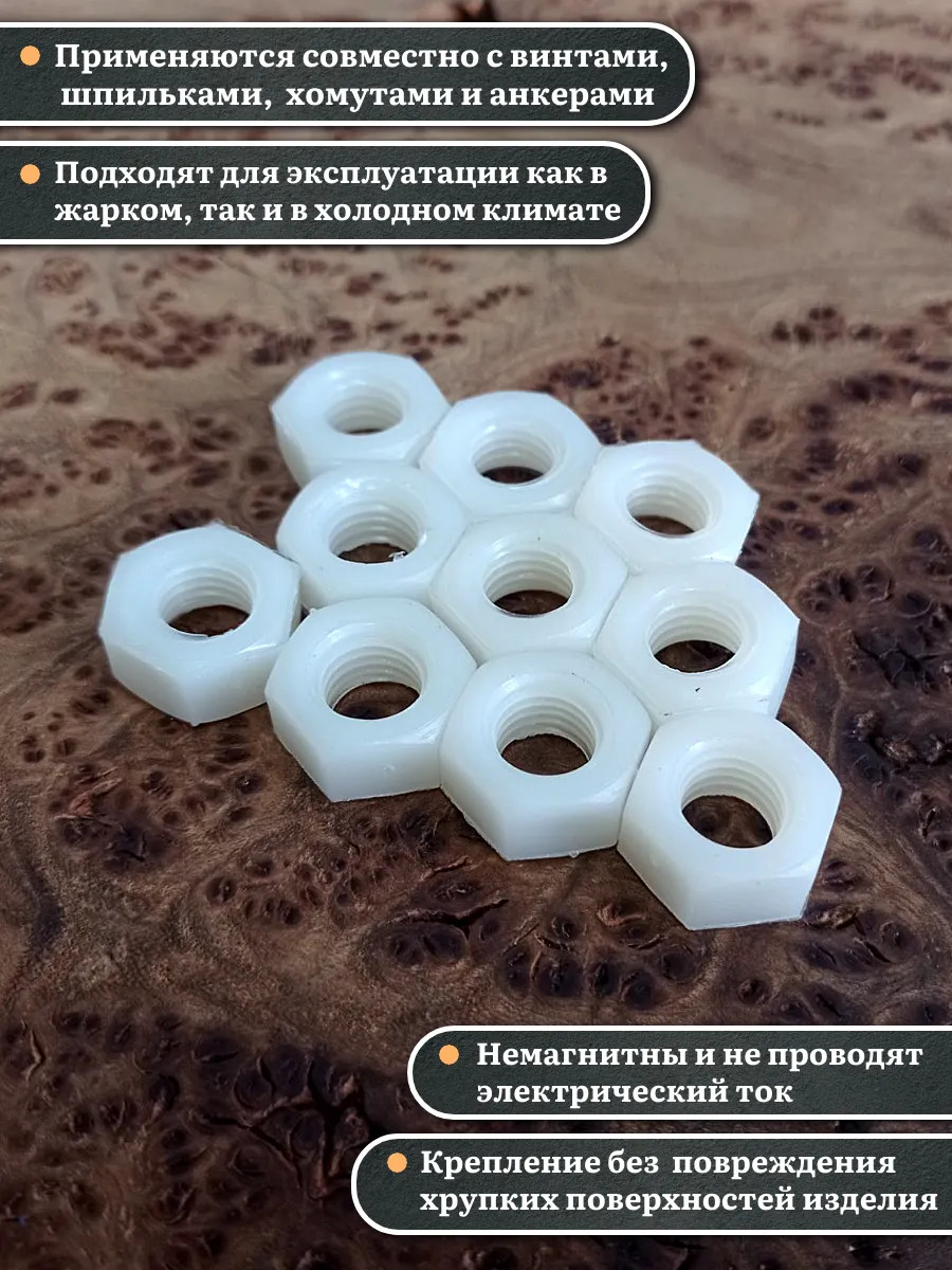 | Гайка полиамидная М10 DIN934 (пластик), 50 шт. | 2000000643014ф50 | 1 шт. |