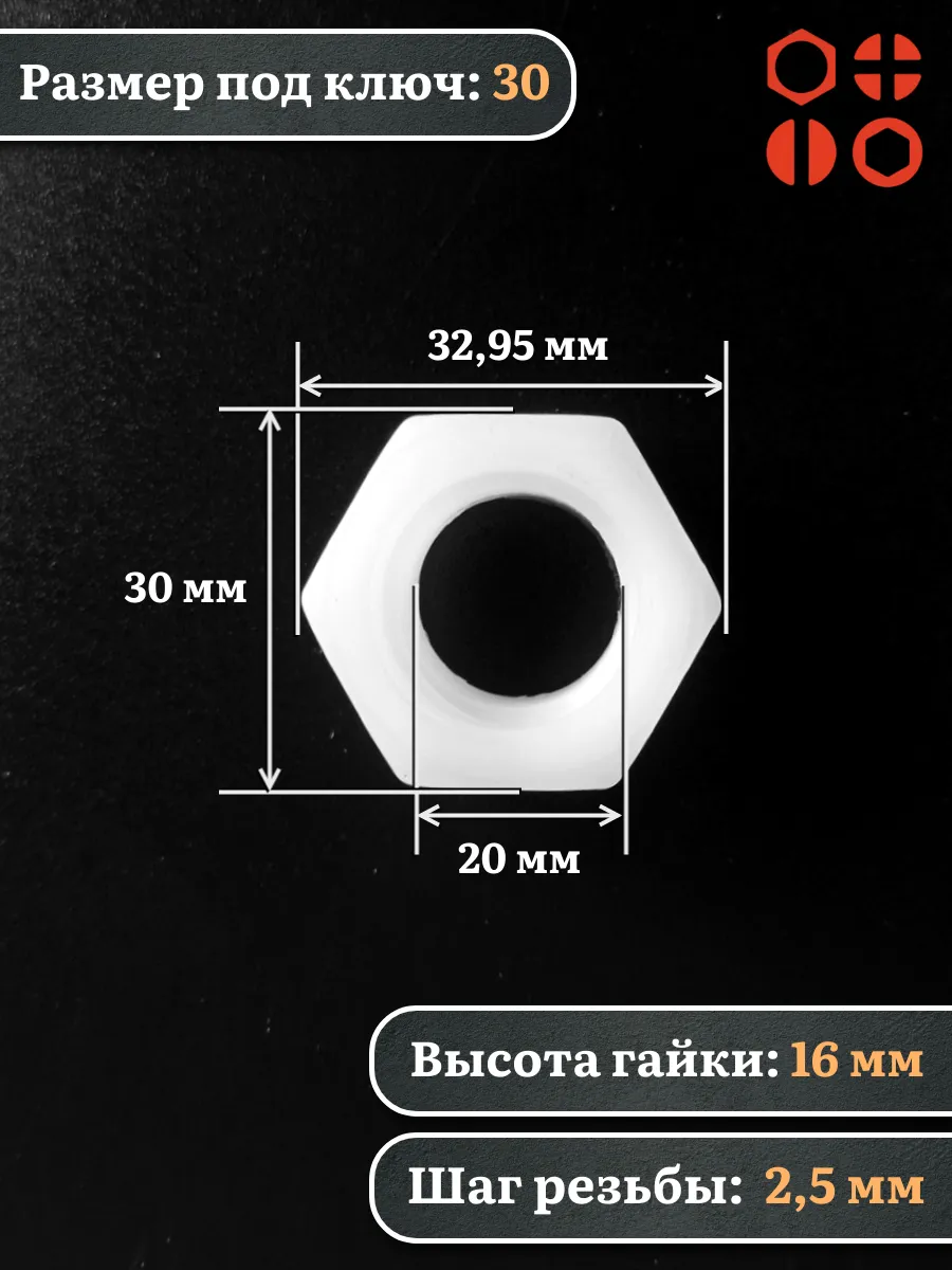 | Гайка полиамидная М20 DIN934 (пластик), 20 шт. | 2000000644196ф20 | 1 шт. |