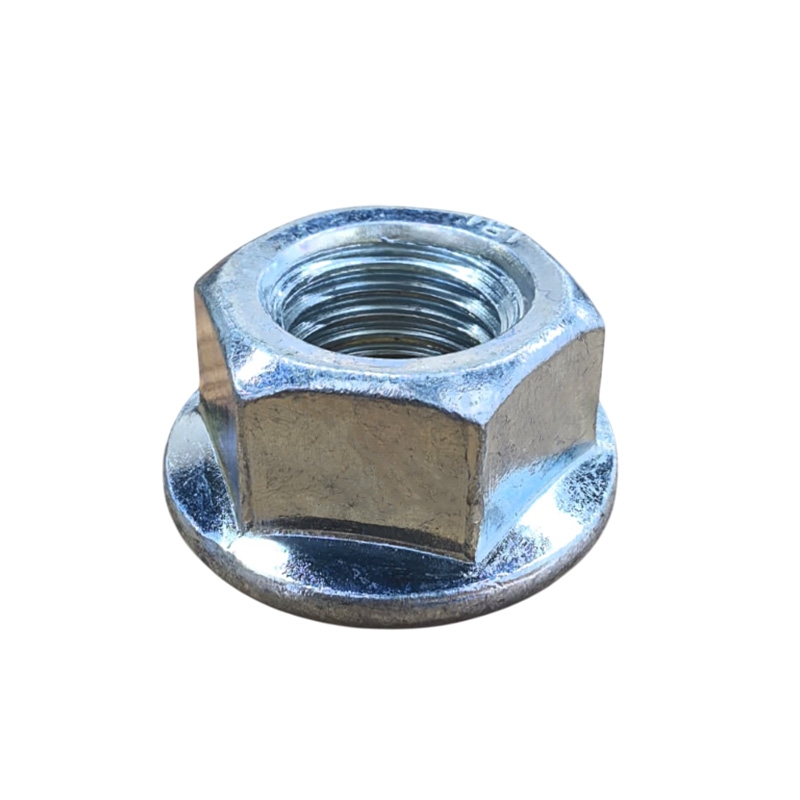 Гайка с фланцем это обычная шестигранная гайка в нижней части которой выполнено уширение (буртик) с насечками или без них. Применение гаек с фланцем значительно ускоряет процесс сборки, поскольку не требуется время на подкладывание шайбы. Фланец по диаметру больше гайки. Фланцевые гайки находят широкое применение в автомобилестроении, при производстве бытовых инструментов и техники, оборудования для пищевой, химической промышленности. Крепеж изготавливается из нержавейки А2 или А4, могут подвергнуть газотермическому цинкованию.