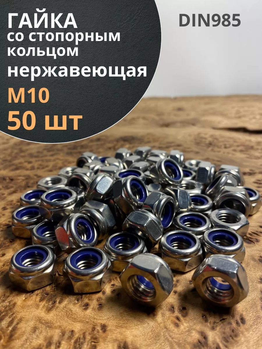 Гайка со стоп кольцом М10 нержавеющая, DIN985, 50шт.
