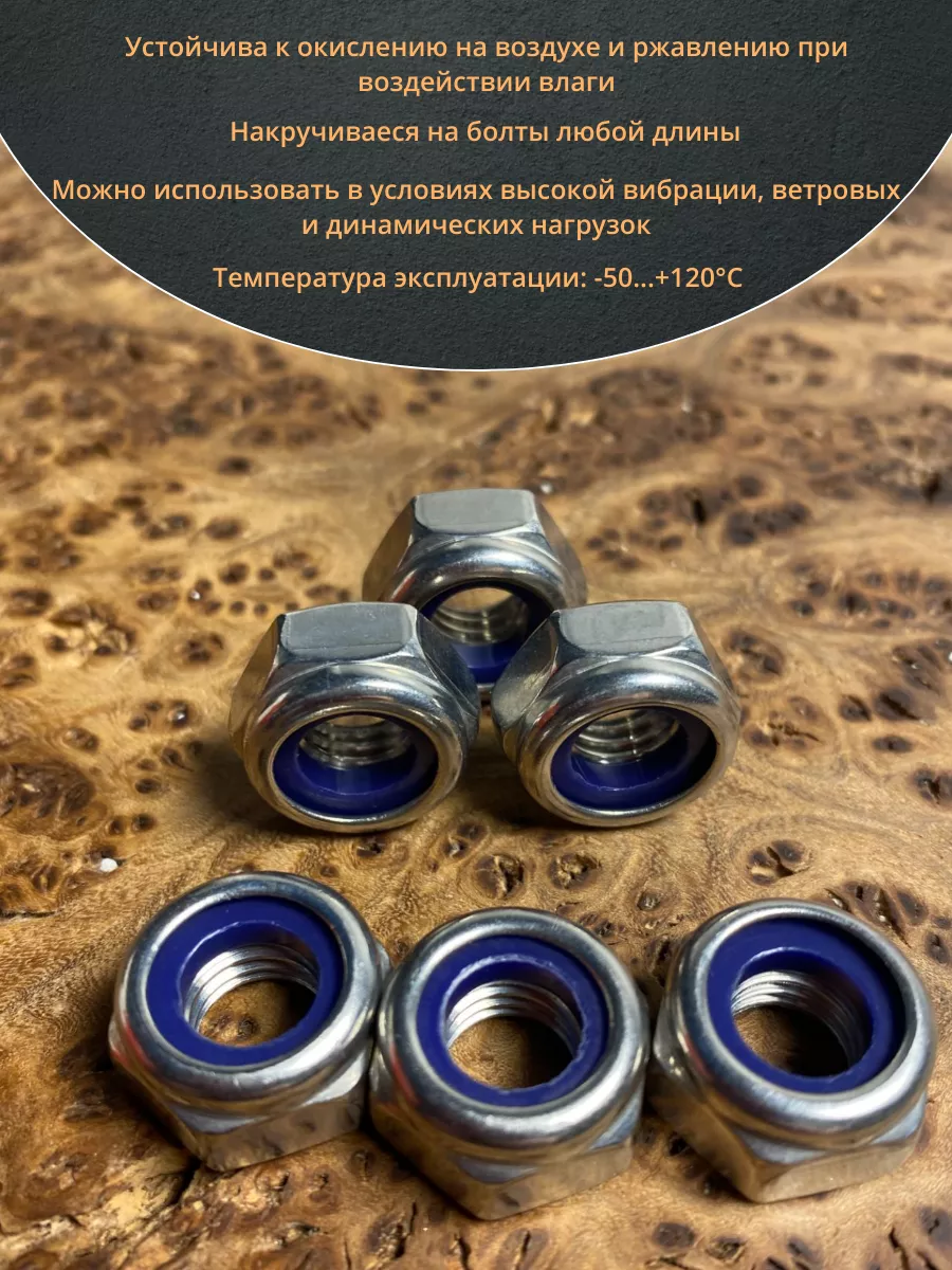 Гайка со стоп кольцом М10 нержавеющая, DIN985, 100 шт. 11219 1 шт.