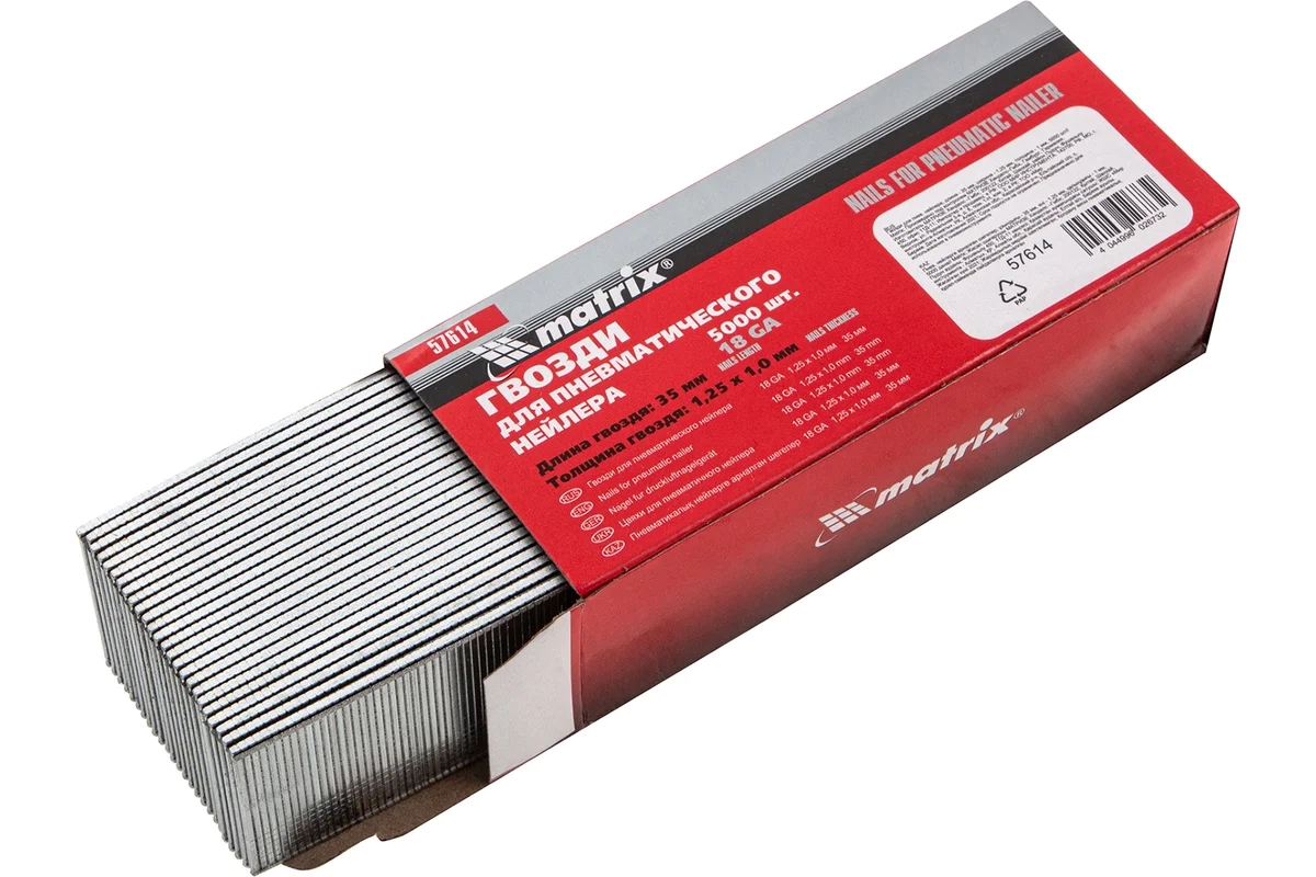 Гвозди для пневм.нейлера 16GA сечение 1,25х1,0 длина 35 мм 5000шт. Matrix