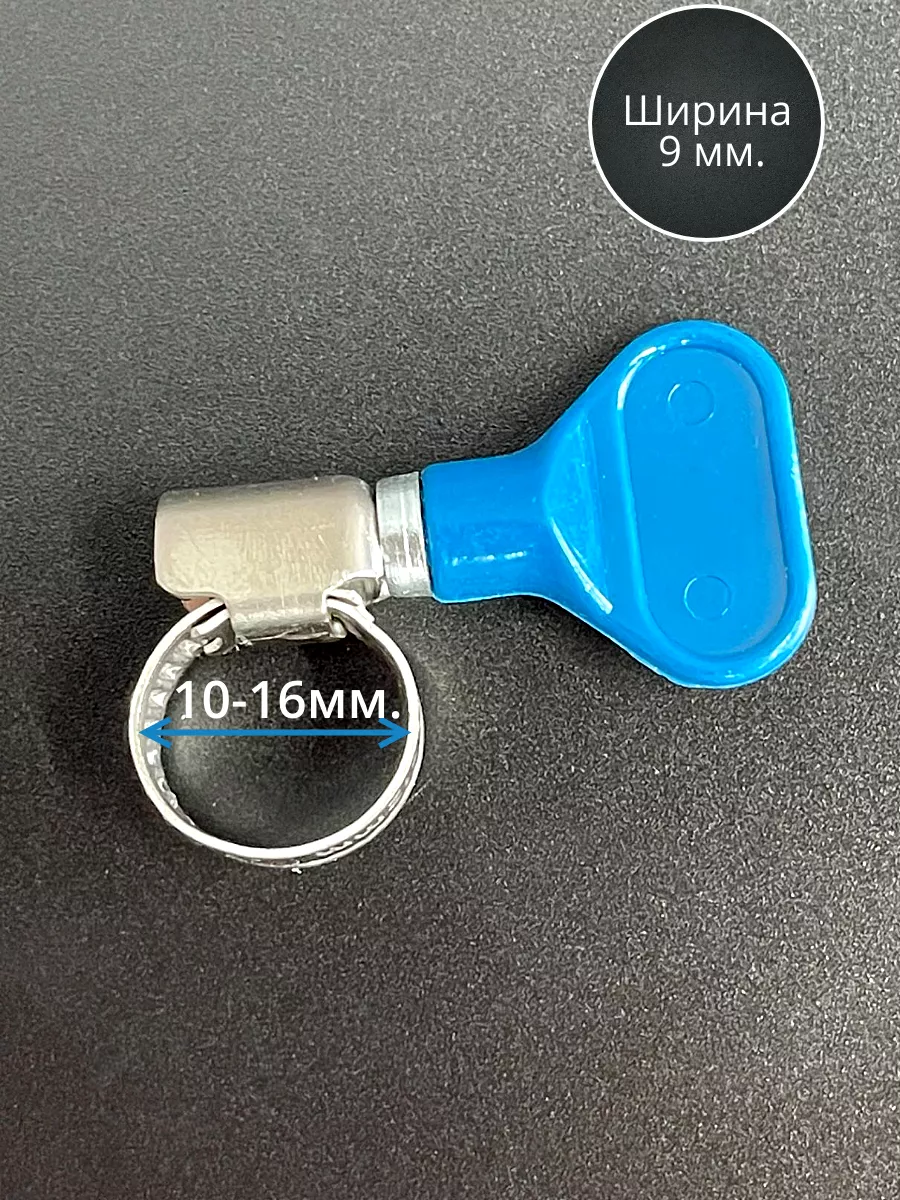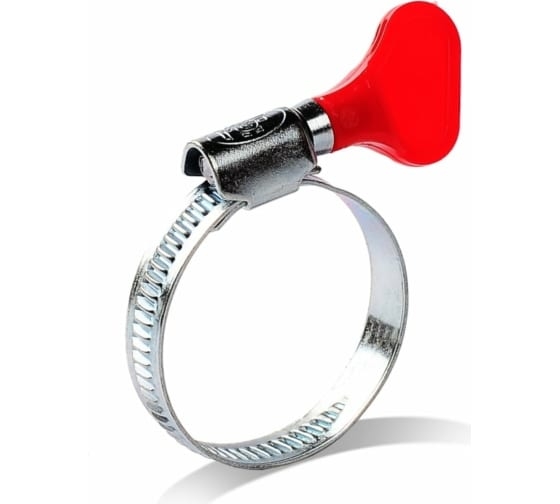 Хомут с ключом - это обычное крепление для шлангов червячного типа. Однако затягивание его производится без использования отвертки или гаечного ключа. Инструмент не требуется, так как его заменяет несъемный пластиковый или металлический ключ (также называемый барашком), прикрепленный к концу винта. Благодаря прочности пластика допускается значительное усилие при затягивании. Хомут червячный с барашком многоразовый, может неоднократно сниматься и снова использоваться по назначению.