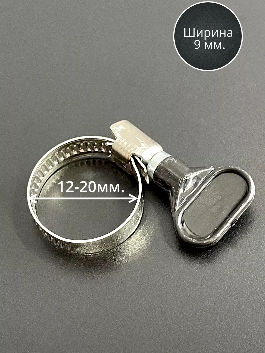 Хомут червячный 12-20 с барашком металлический, 5 шт.