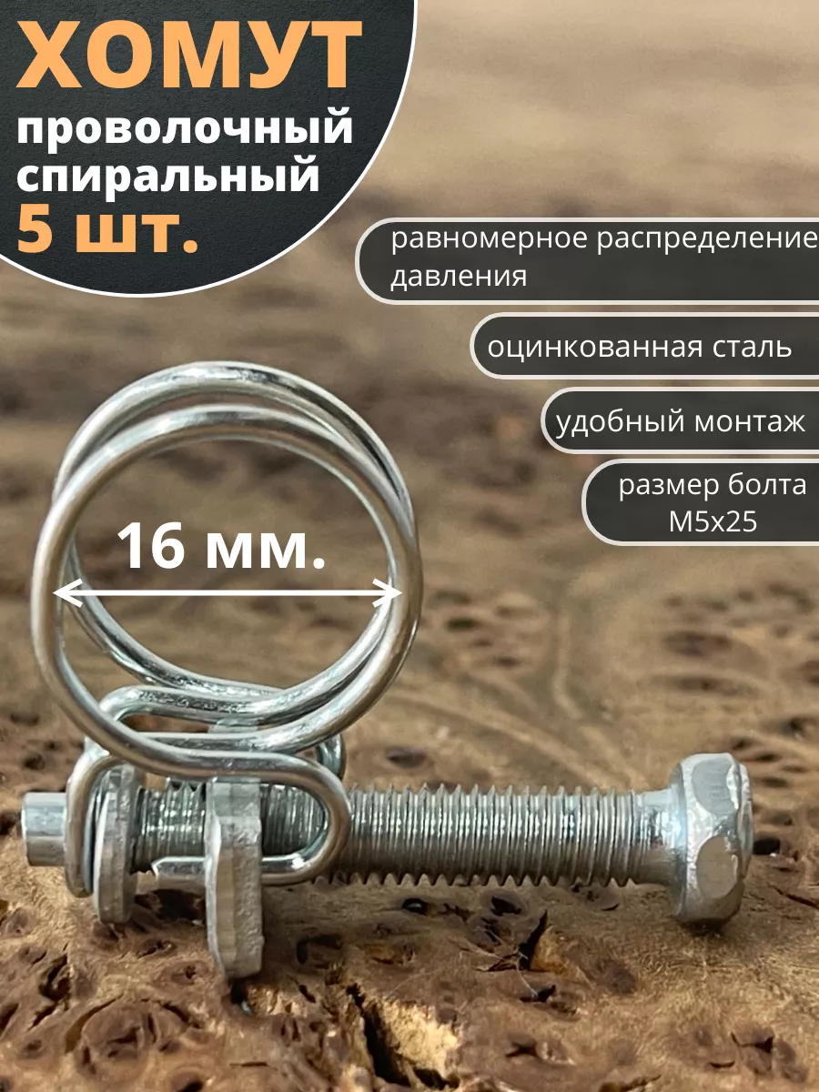 Хомут проволочный 16 мм спиральный металл ОЦ, 5 шт.
