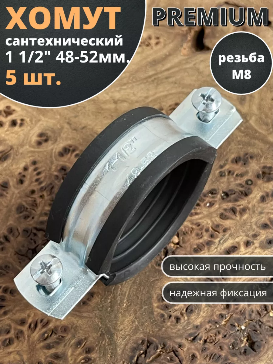 Хомут сантехнический d 1 1/2" 48-52 PREMIUM , 5 шт.