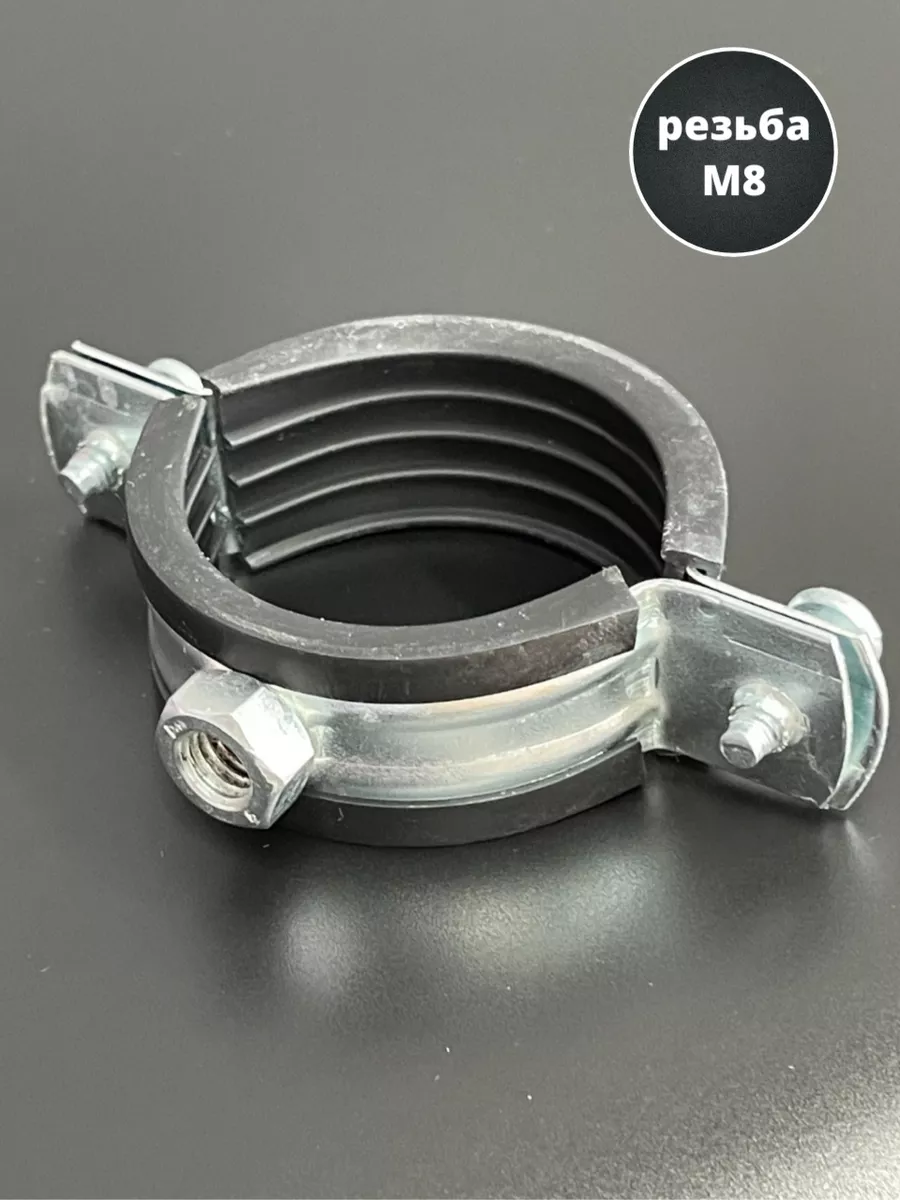 Хомут изготавливается из стали, прокладка - из высококачественной резины. Все металлические детали в обязательном порядке оцинковываются. С помощью трубного хомута трубы могут фиксироваться на полу, стенах или потолке. Данный вид хомута предназначен для надежного крепежа трубопроводов. Используется в сантехническом деле. Пользуется большой популярностью, за счет гарантии надежной фиксации. Материал основания: древесина, металл, бетон, кирпич