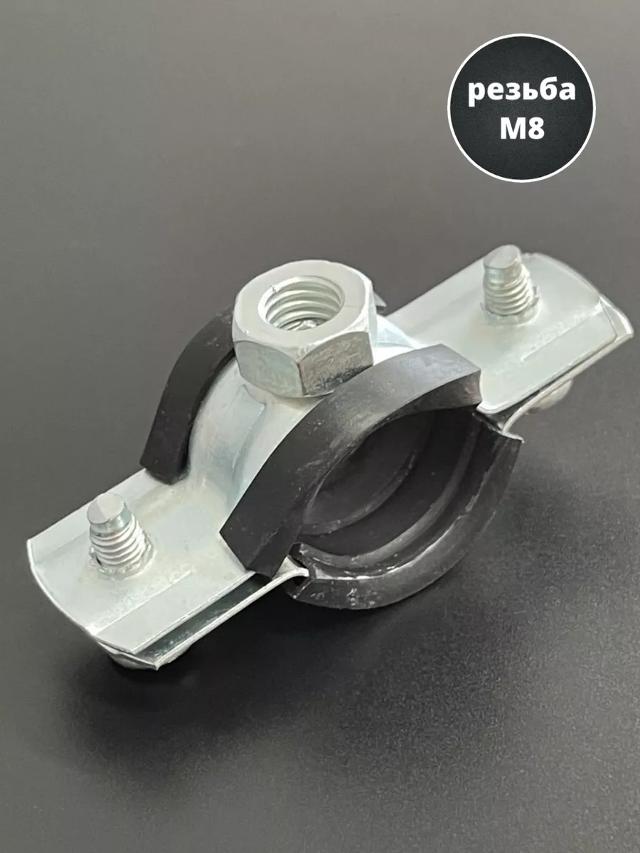 Хомут изготавливается из стали, прокладка - из высококачественной резины. Все металлические детали в обязательном порядке оцинковываются. С помощью трубного хомута трубы могут фиксироваться на полу, стенах или потолке. Данный вид хомута предназначен для надежного крепежа трубопроводов. Используется в сантехническом деле. Пользуется большой популярностью, за счет гарантии надежной фиксации. Материал основания: древесина, металл, бетон, кирпич