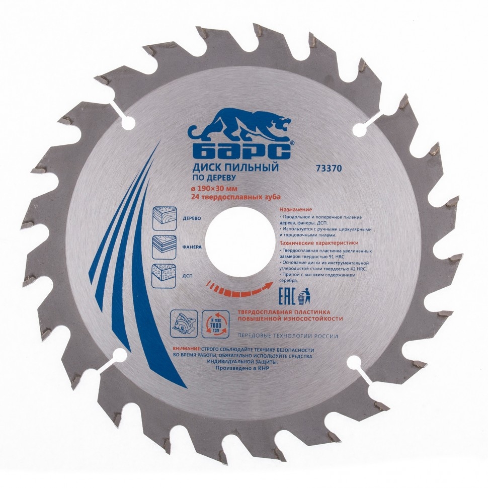 Пильный диск Барс 73370, ф190 х 30 мм, с 24 зубьями используется в качестве оснастки для циркулярных и торцовочных пил. За счет универсального типа зуба АТВ он позволяет быстро распиливать древесину мягких и твердых пород, фанеру, МДФ и ДСП как в продольном, так и в поперечном направлении. Диск выдерживает интенсивное применение и рекомендован для проведения работ большого объема. Увеличенные твердосплавные пластины выдерживают многократную заточку, что увеличивает срок службы диска.