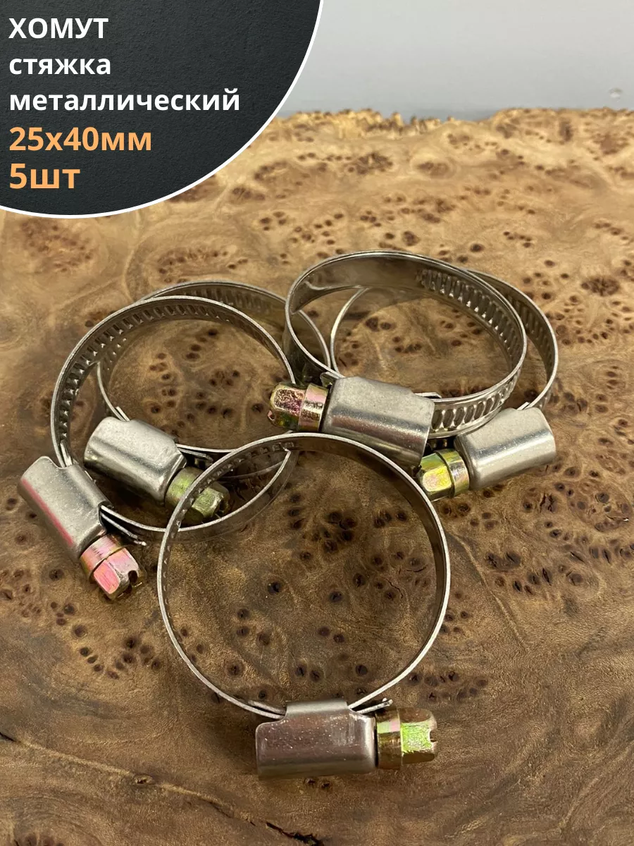 Хомут стяжка металлический 25-40 мм шир.9 мм , 5 шт.