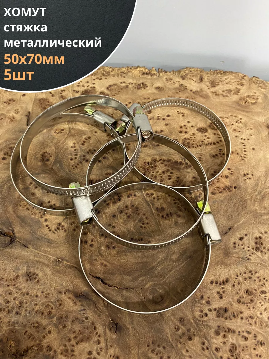 Хомут стяжка металлический 50-70 мм шир.9 мм , 5 шт.