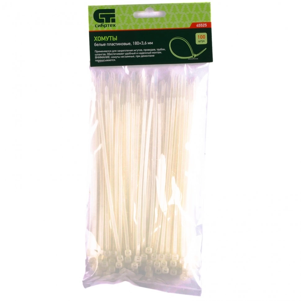 | Хомуты пластиковые белые 300х3,6 мм 100шт. Сибртех | 45531 | 1 шт. |
