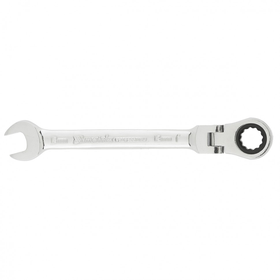 Ключ комбинированный трещоточный шарнирный зеркальный хром 13 мм CrV Matrix