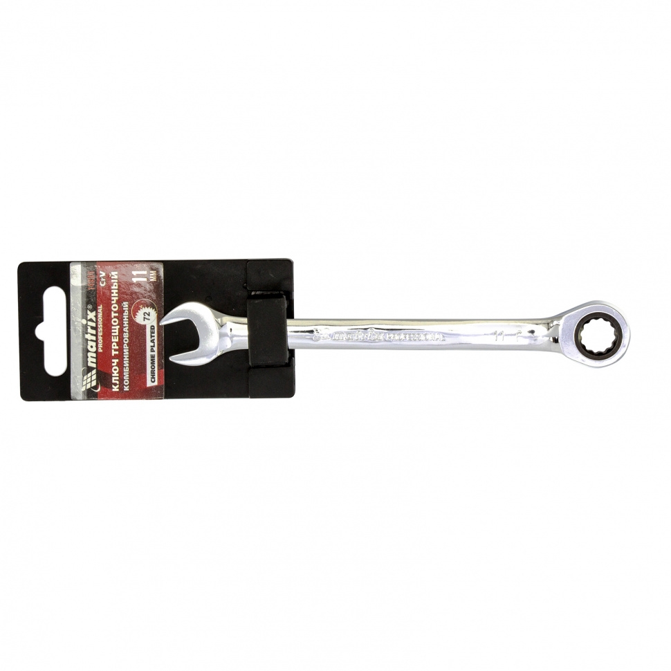 Ключ комбинированный трещоточный зеркальный хром 11 мм CrV Matrix