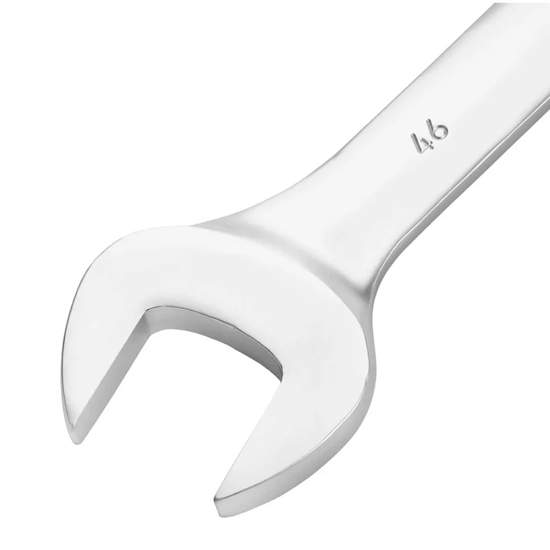Ключ комбинированный 46 мм, никелированный, Сибртех предназначен для работы с резьбовым крепежом размером 46 мм. Инструмент оснащён двумя рабочими частями — рожковой и накидной, что расширяет его функциональность. Кольцевой зев с 12 гранями позволяет работать с болтами и гайками как с шестигранным, так и с двенадцатигранным профилем.