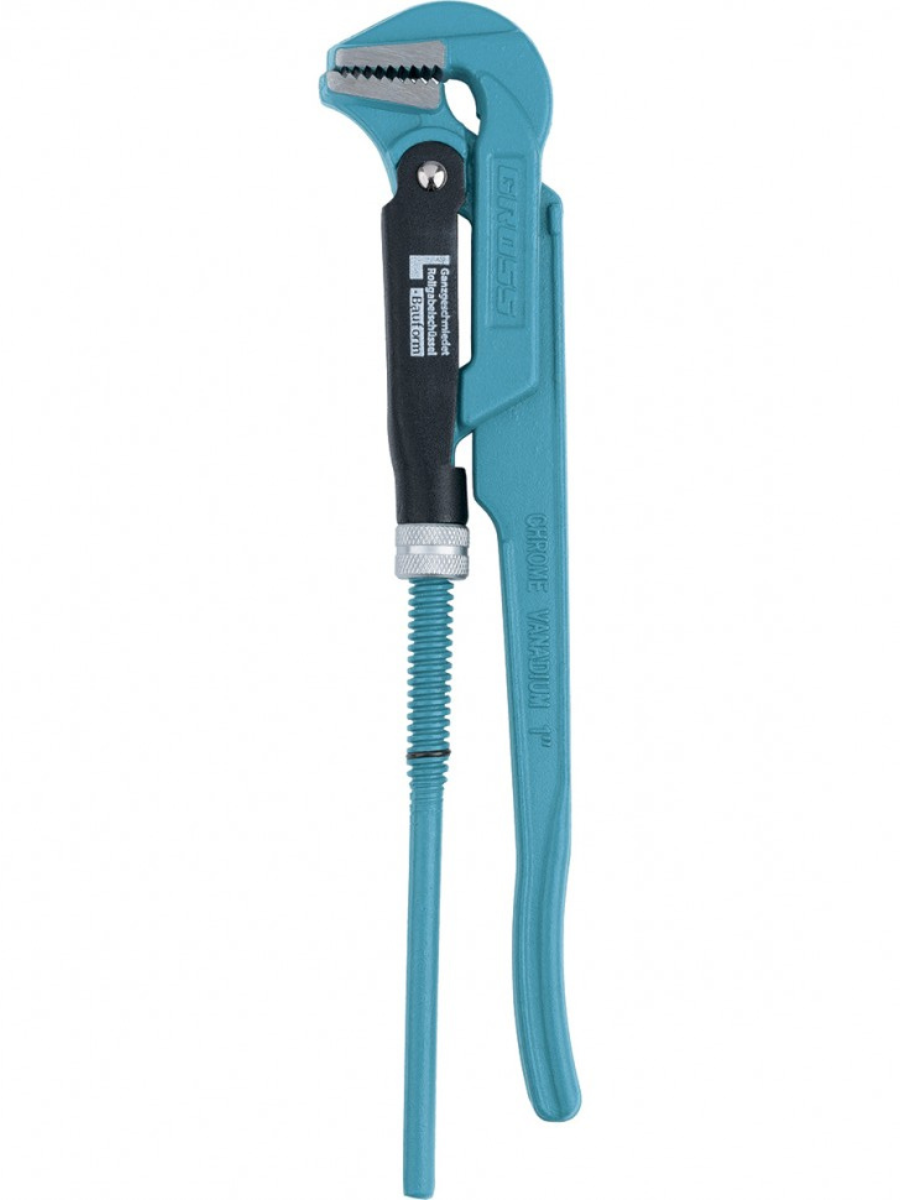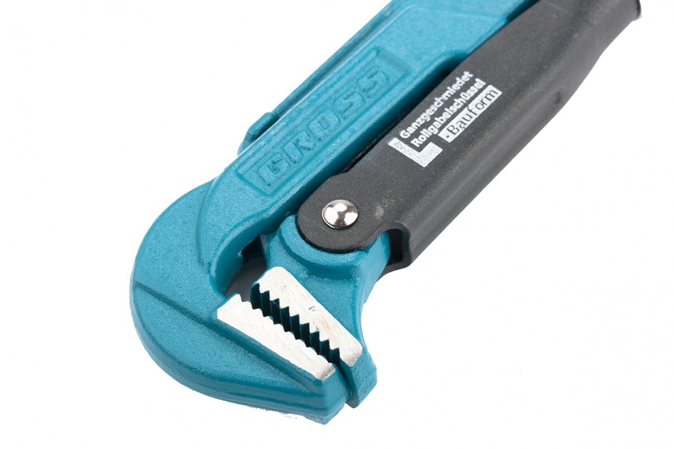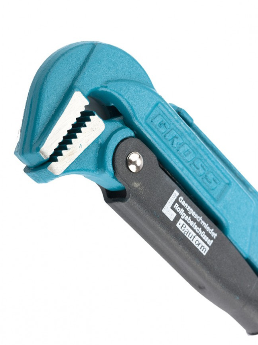 Цельнокованый трубный рычажный ключ Gross №1 15601, CrV, тип - «L», используется для захвата и вращения труб, а также других деталей диаметром 1 дюйм без специальных граней. Усиленная конструкция ключа выдерживает интенсивные нагрузки и позволяет применять его как в быту, так и в профессиональной сфере: в автомастерских, ЖКХ и т.д. Ключ L-образной формы оптимален для удержания плоских деталей. Рычажный механизм обеспечивает высокое прижимное усилие, повышая эффективность работы. Преимущества Гарантией высокого качества ключа выступает хромованадиевая сталь, которая используется при его изготовлении. Порошковое покрытие предупреждает образование коррозии на ключе. Стопорное кольцо на регулировочной гайке позволяет зафиксировать ее в нужном положении для удобства работы. Зубья прогрессивной формы имеют наклон против направления вращения, таким образом происходит самоблокируемый захват труб и деталей. Губки прошли закалку высокочастотными токами, что позволило добиться высокой твердости 57-60 HRC.