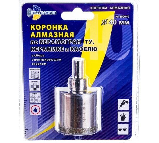 Коронка по керамике и кафелю, алмазная с центрир.сверлом 40 мм