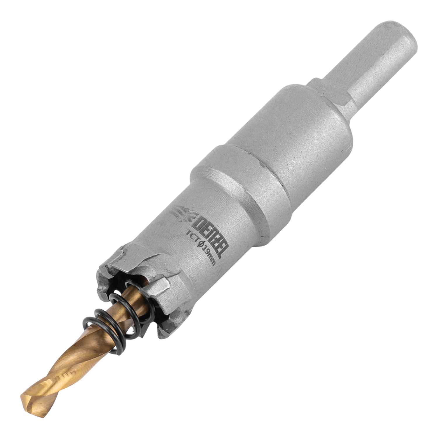 Твердосплавная коронка Denzel 724001 диаметром 19 мм используется для сверлильных работ по черным, цветным металлам, пластику и другим материалам. Позволяет получить отверстия большего диаметра в сравнении с обычным сверлом. Твердосплавные зубья легко выдерживают интенсивные нагрузки, поэтому коронка подходит не только для бытового, но и для профессионального применения.