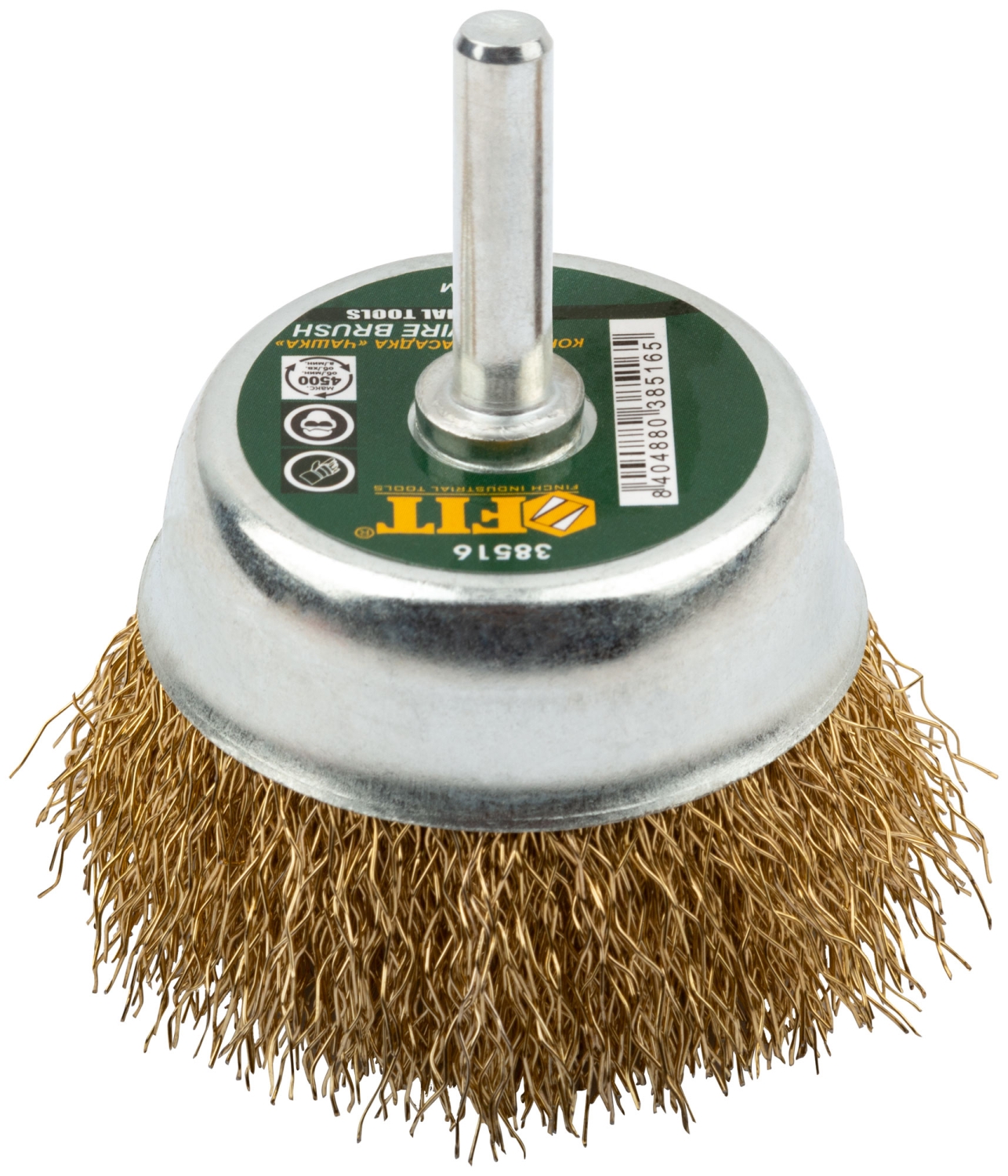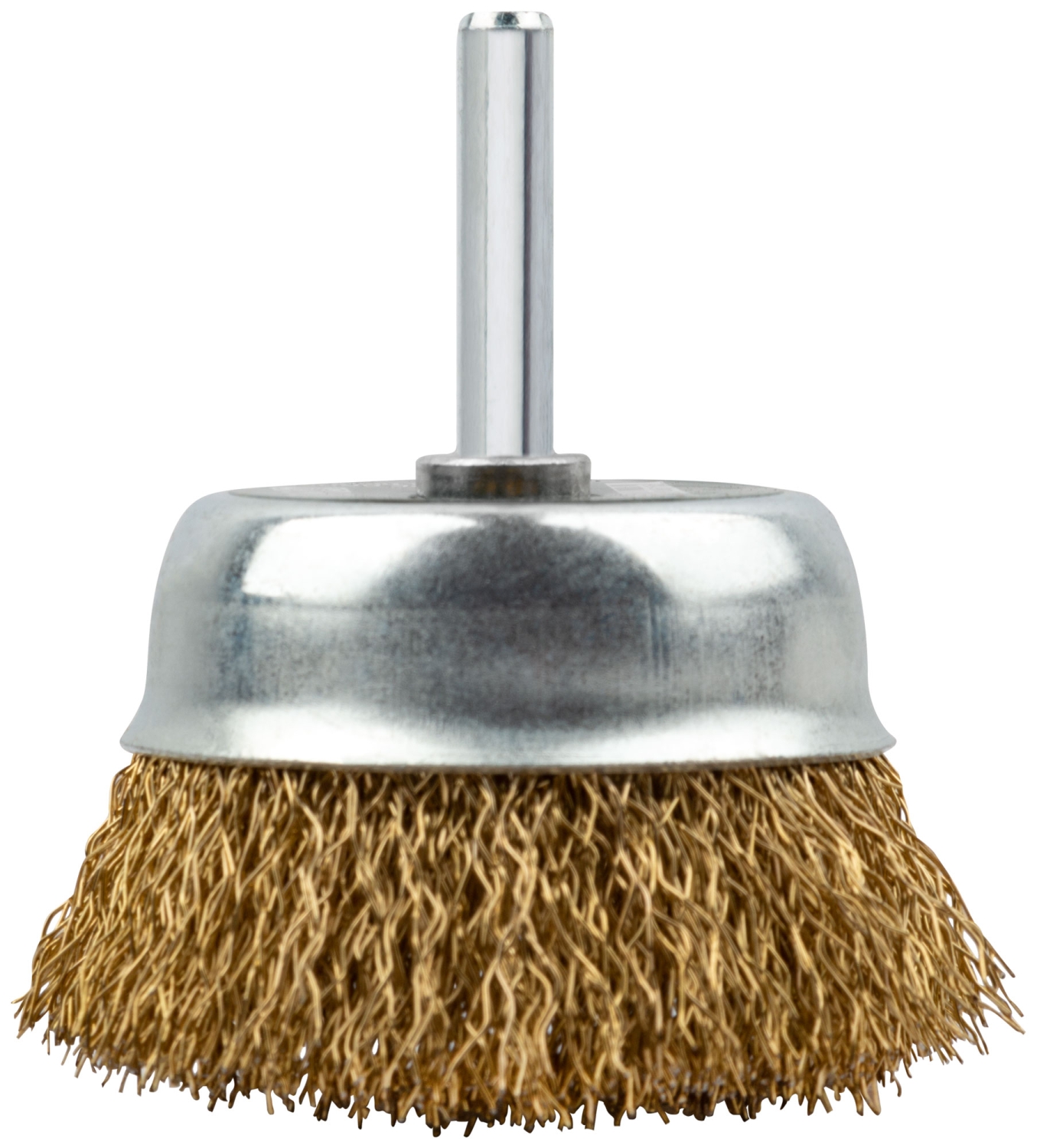 Корщетка-чашка, со штифтом, стальн.латунир.волнист.проволока 60 мм