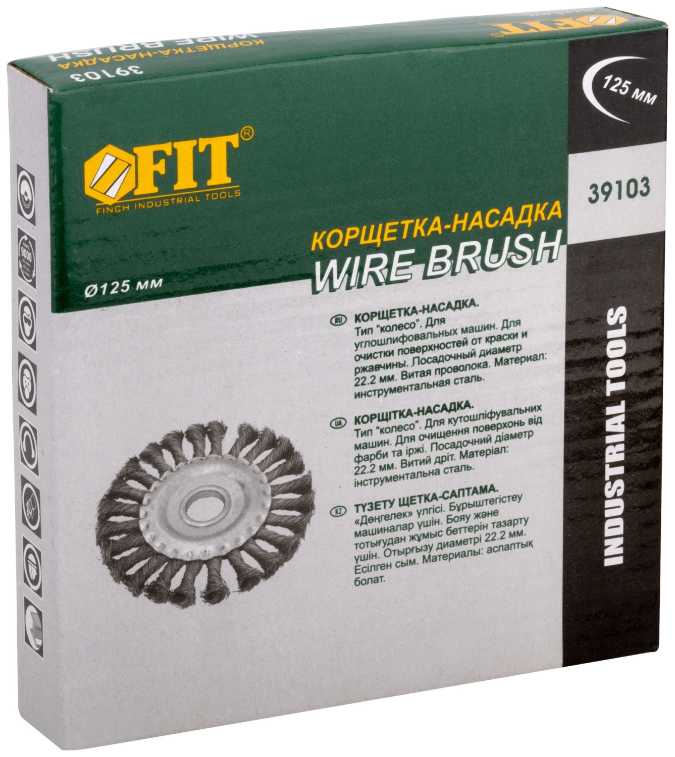 Корщетка-колесо FIT IT 39103 является сменным элементом для угловых шлифовальных машин. Применяется для зачистки от лака, краски и ржавчины различных поверхностей и изделий. Рабочая часть состоит из стальной витой проволоки.
